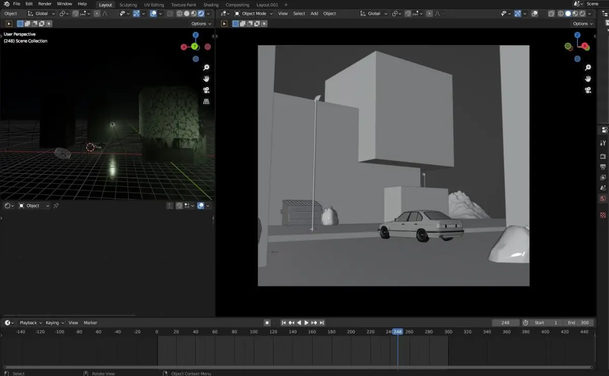 A realtime Evee based night-time street.
