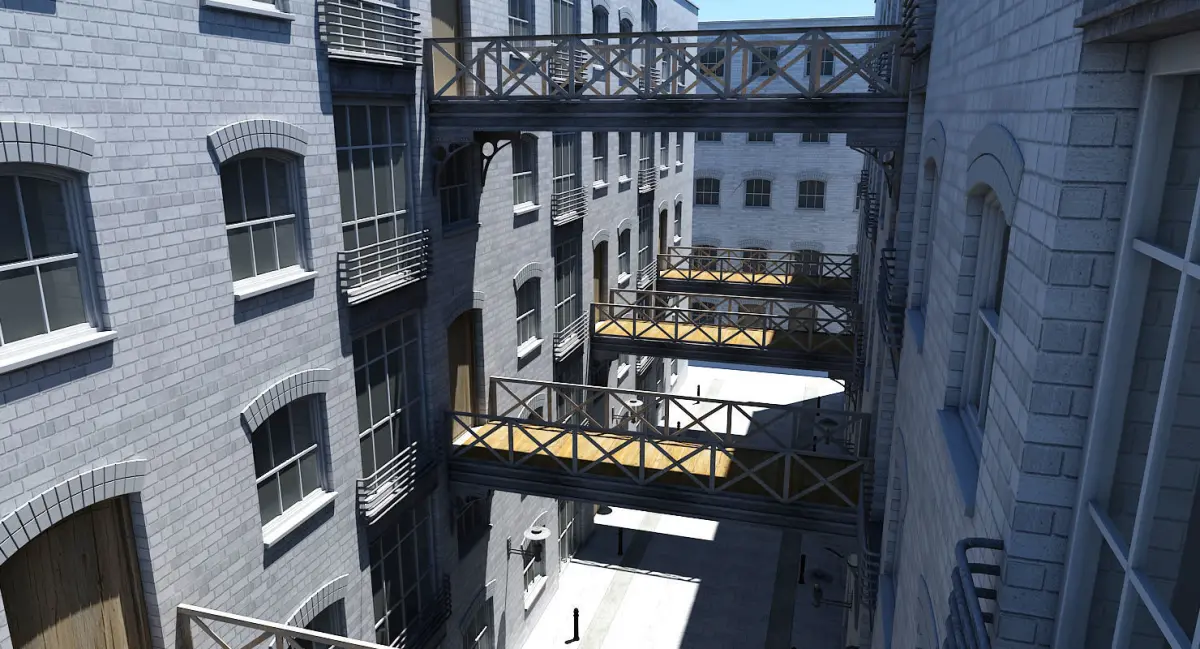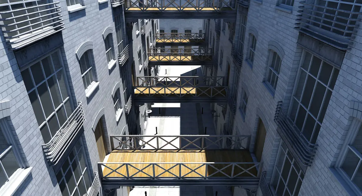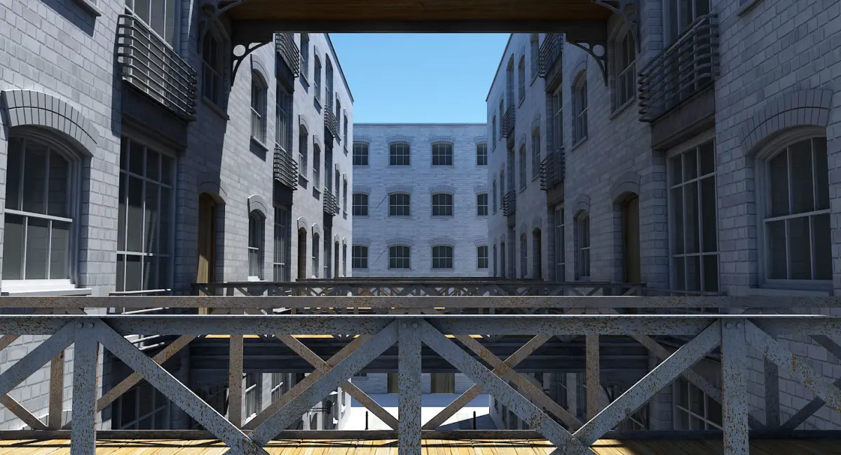 Detailed 3D model of an alley way.