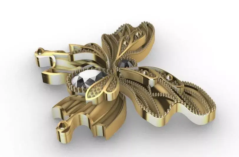 High-quality 3D model of a butterfly-shaped brooch/pendant, designed with fine ornamental details.