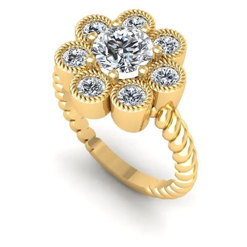 Ring Size Gold Metal Weight in dfferent Karats like 14k, 18k, 22k Gem Stone weight ( Carat Weight ) for all stones in the Model also Quantity of Stones. Dimensions of the Model in mm (millimeter) unit. Delivery Contains 11 files as following :