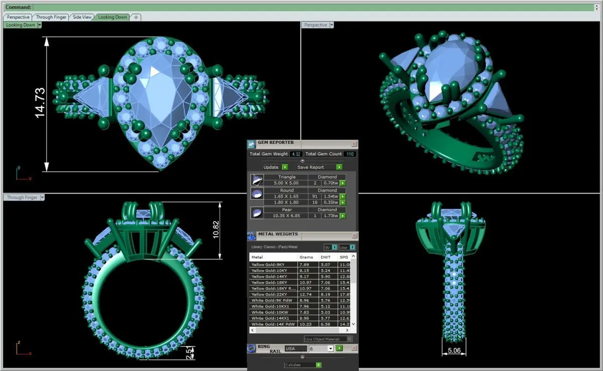 Ring Size Gold Metal Weight in dfferent Karats like 14k, 18k, 22k Gem Stone weight ( Carat Weight ) for all stones in the Model also Quantity of Stones. Dimensions of the Model in mm (millimeter) unit. Delivery Contains 11 files as following :