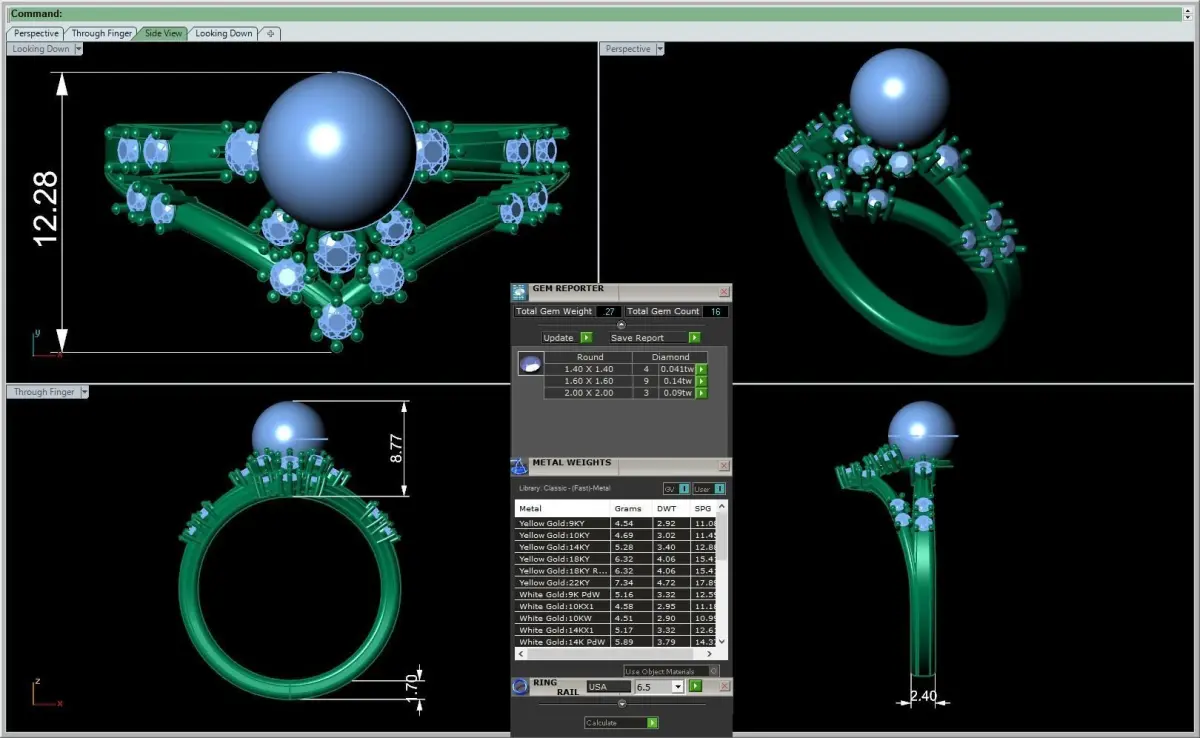 Ring Size Gold Metal Weight in dfferent Karats like 14k, 18k, 22k Gem Stone weight ( Carat Weight ) for all stones in the Model also Quantity of Stones. Dimensions of the Model in mm (millimeter) unit. Delivery Contains 11 files as following :