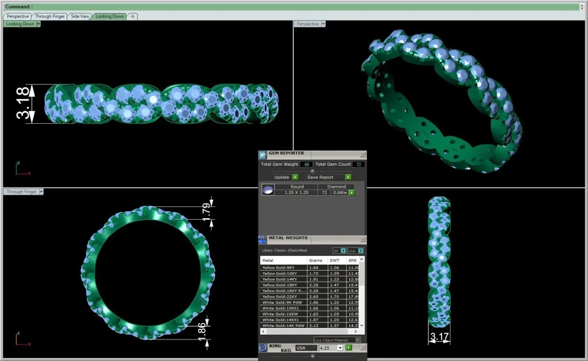 Ring Size Gold Metal Weight in dfferent Karats like 14k, 18k, 22k Gem Stone weight ( Carat Weight ) for all stones in the Model also Quantity of Stones. Dimensions of the Model in mm (millimeter) unit. Delivery Contains 11 files as following :