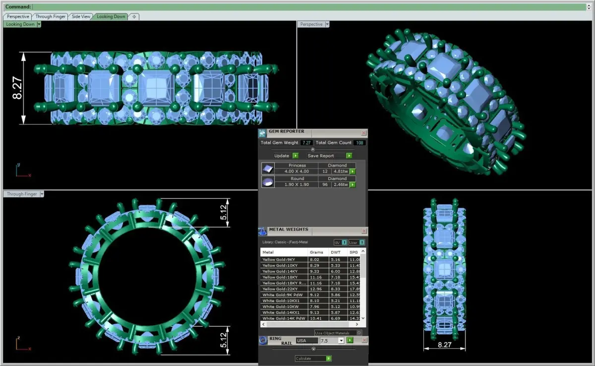 Ring Size Gold Metal Weight in dfferent Karats like 14k, 18k, 22k Gem Stone weight ( Carat Weight ) for all stones in the Model also Quantity of Stones. Dimensions of the Model in mm (millimeter) unit. Delivery Contains 11 files as following :