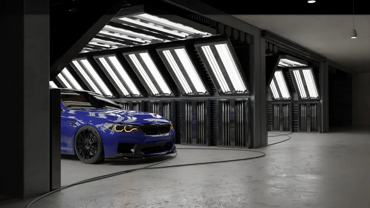 This Interior was modelled in Blender and textured also in there. (Version 3,4) This is highpoly realistic scene for rendering cars with Natural Sun Light or Studio Lights installed to sides and ceiling.The Preview Render: https://www.instagram.com/reel/CoPSIfaoIYJ/?utm_source=ig_web_copy_link&igshid=MzRlODBiNWFlZA==