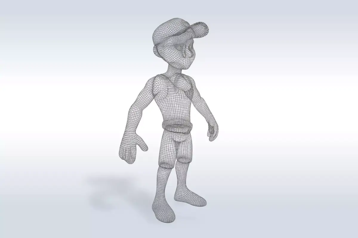 3D model of a muscular man dressed in a blue tank top and shorts, suitable for use in various applications such as video games, animations, and visual effects. The character's physique is well-defined, with prominent muscles in the arms, chest, and legs, making it ideal for representing a fitness enthusiast or a professional athlete. The character's expression is confident and determined, adding to the overall impression of strength and athleticism. This model would be perfect for use in sports-related content, fitness apps, or any project that requires a realistic and engaging representation of a muscular male character.