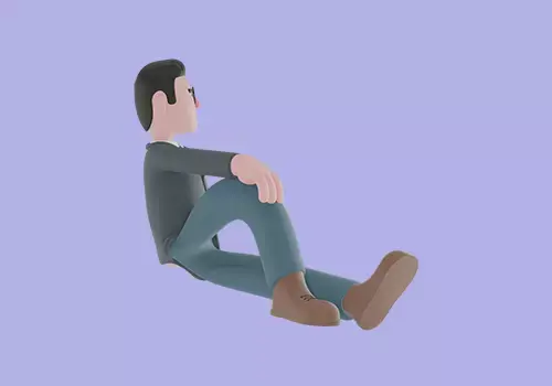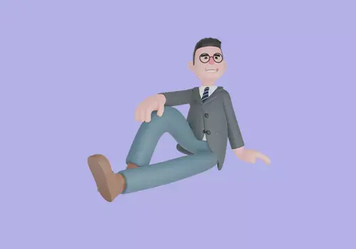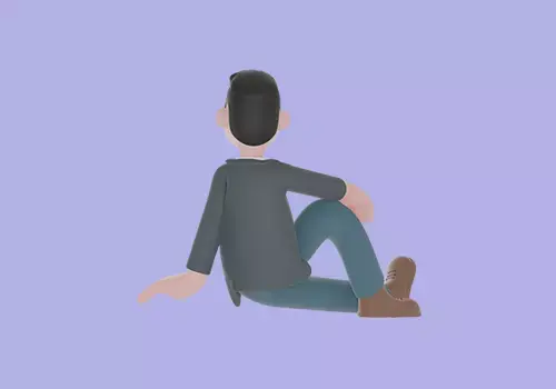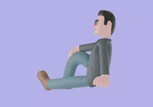 A 3D cartoon-style male teacher character sitting on the floor with one leg bent and one hand supporting his body, showing a casual and relaxed pose. This natural sitting position conveys a sense of comfort, ease, and friendliness — perfect for creating warm, approachable, and relatable scenes.