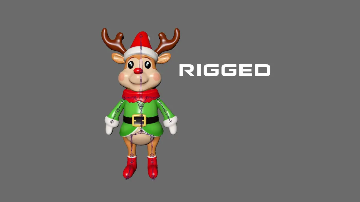 3D Cartoon Reindeer Christmas Animated in Festive Attire Low-poly 3D model