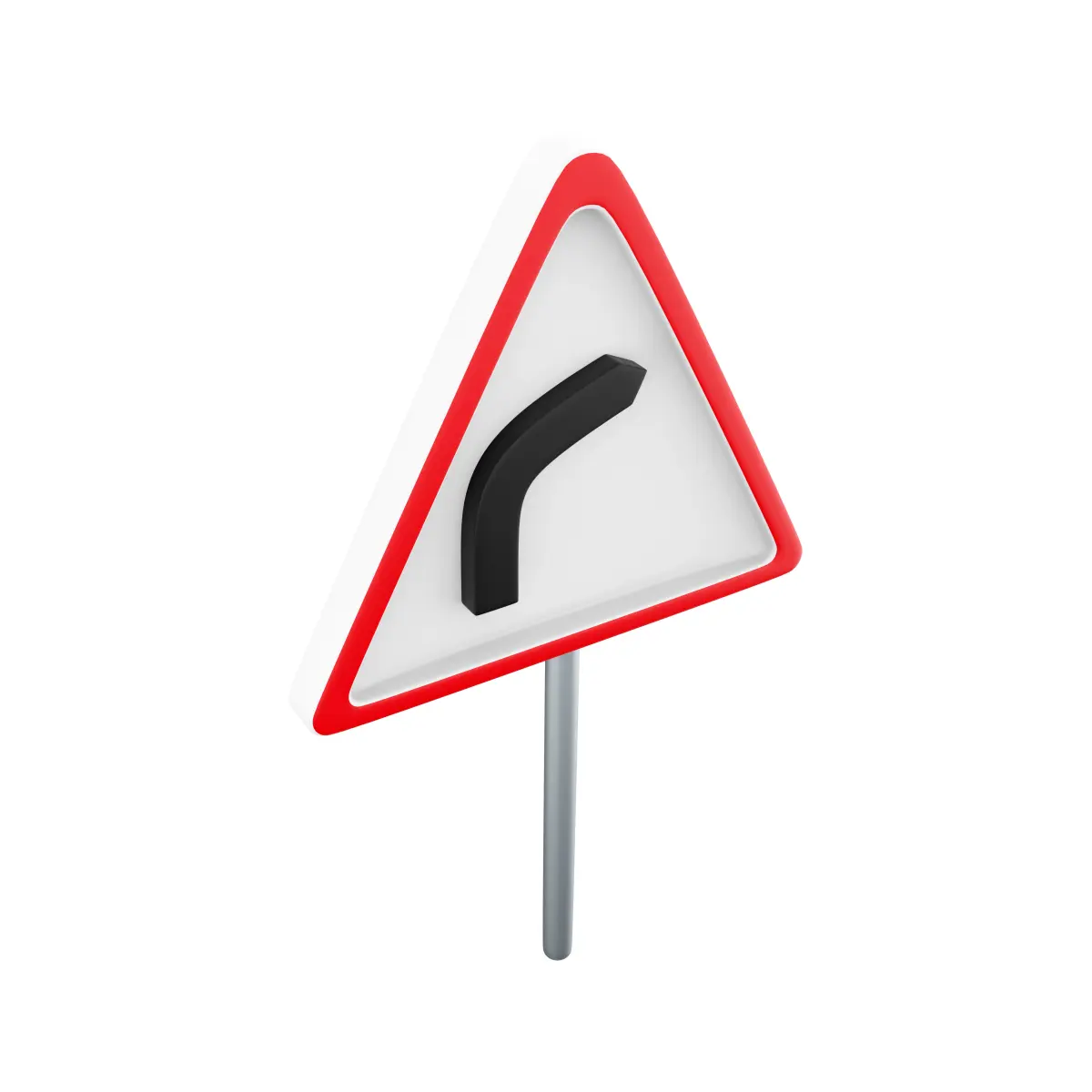3d render of a UK warning of a right-hand bend ahead road sign. 3d render cartoon right-hand bend ahead road sign icon