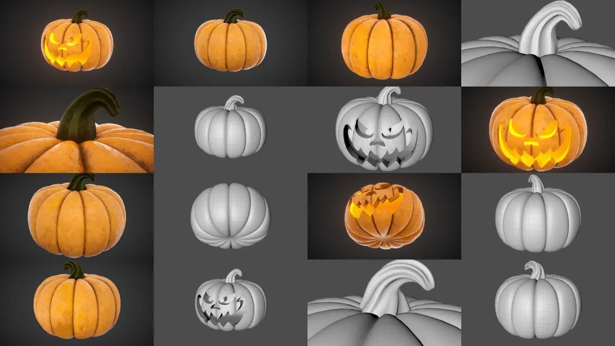 - Normal pumpkin: 4096x4096 Textures (Albedo, metallic, normal, roughness, ambient occlusion)