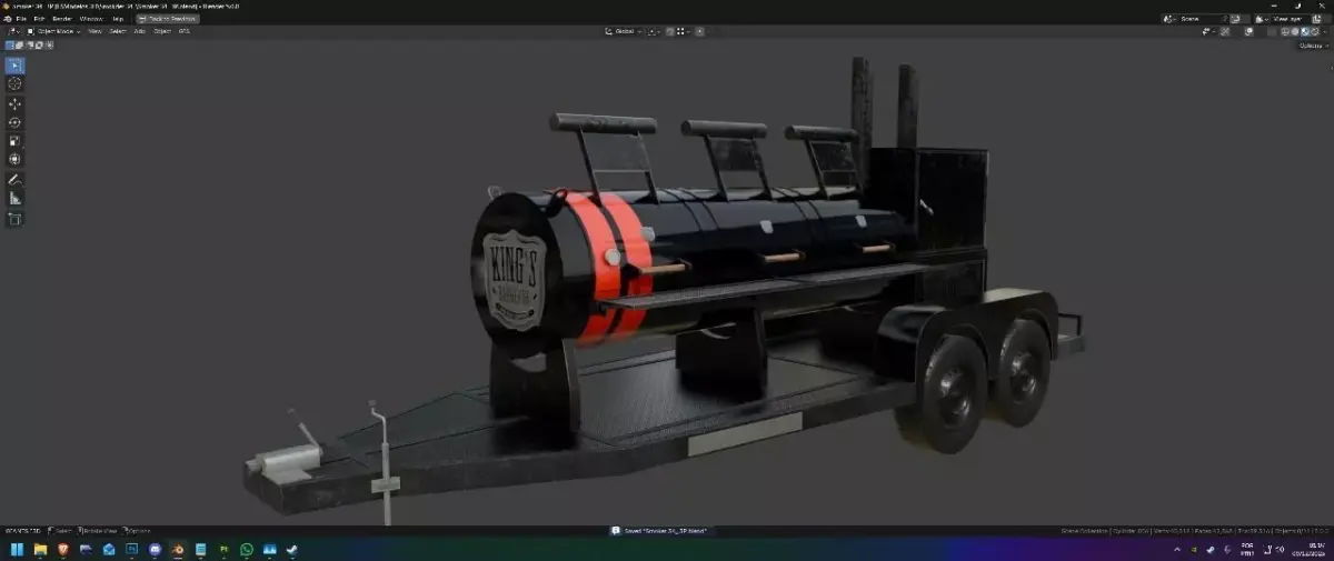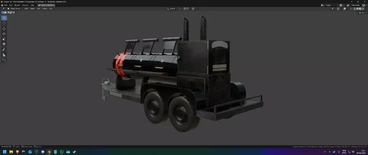 Portable charcoal grill for use at barbecues, events, and easy transport.Perfect model for presentation at events, barbecues, industrial kitchens, and outdoor areas of homes.Model made based on the manufacturer's correct measurements.
