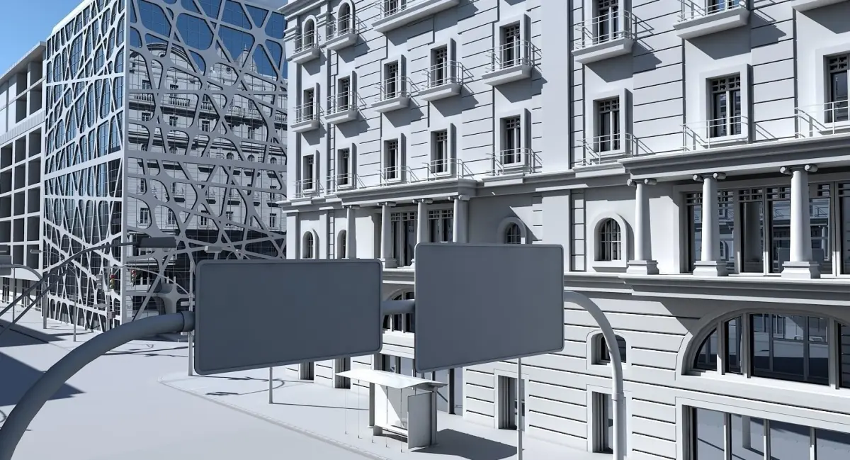 This scene has 12 high definition buildings, road / pavement details, and detailed street furniture.