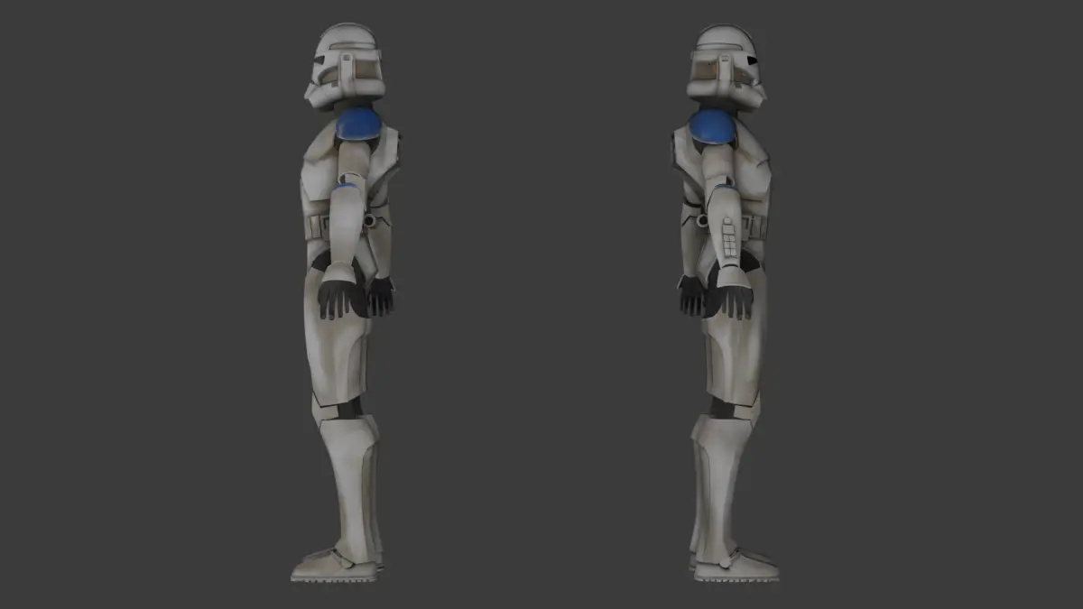 - Armor with Texture Details: The classic Phase II armor of the 501st Legion with iconic blue markings and realistic scuffing/battle wear effect.