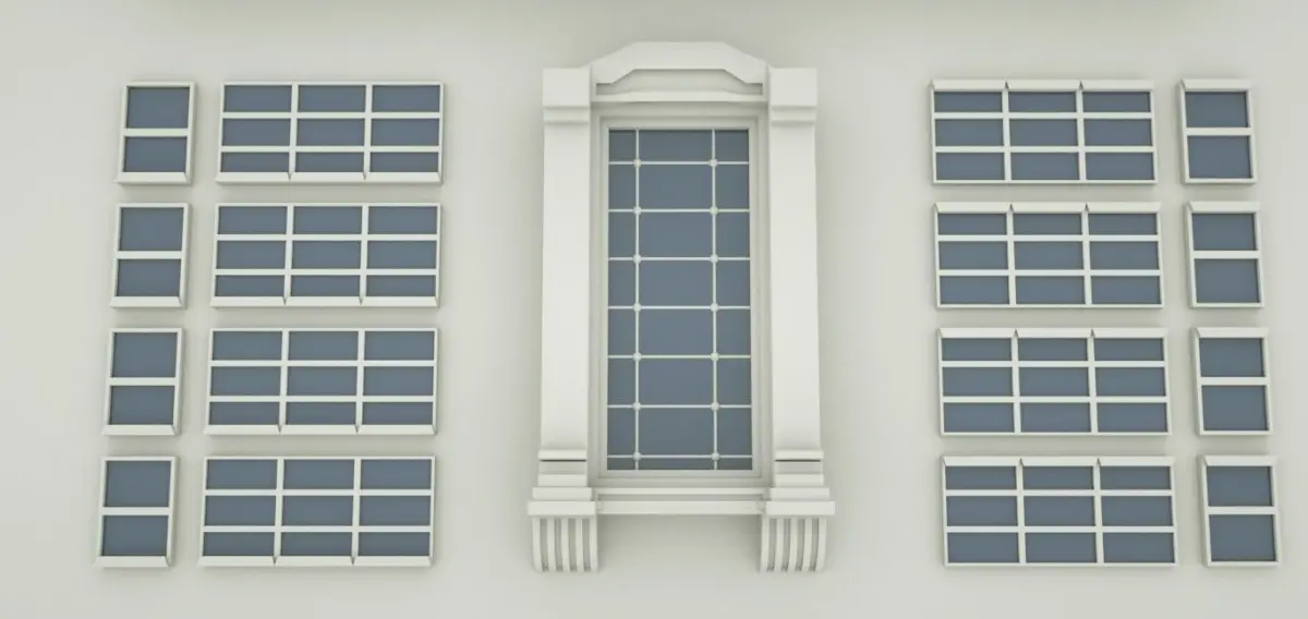 3D Building model include :Classic window - classic columns - wall decoration - glass layers - modern gate Formate :fbx - obj - dxf - 3ds -