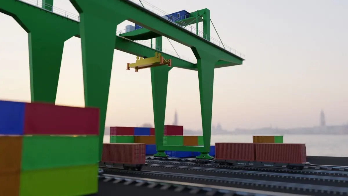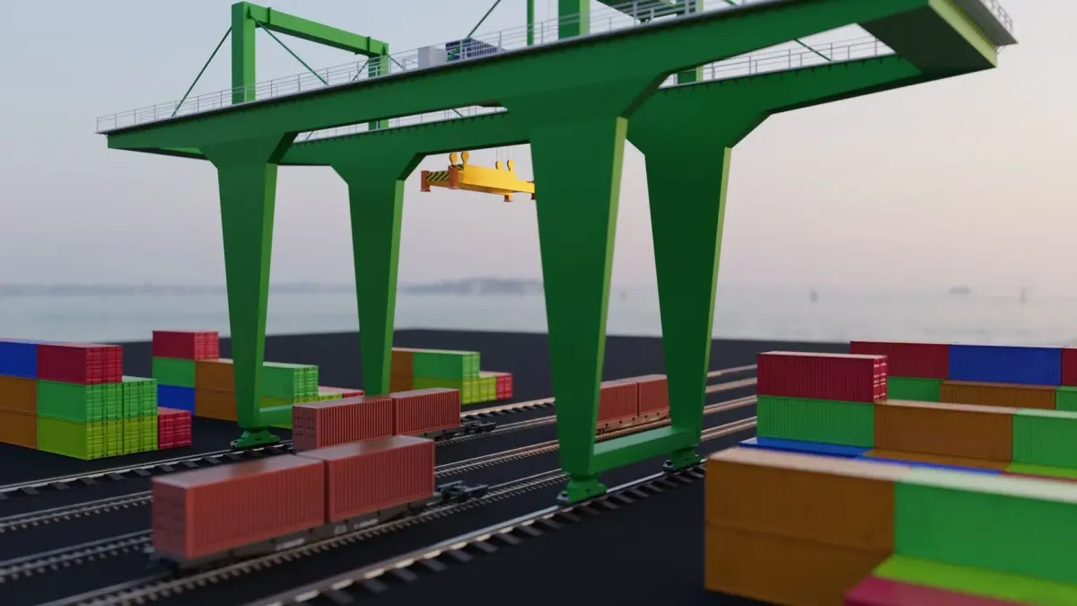 High definition 3D model of a Crane with dock yard. The model is suitable for various purposes, such as games, animations, simulations, presentations, etc.