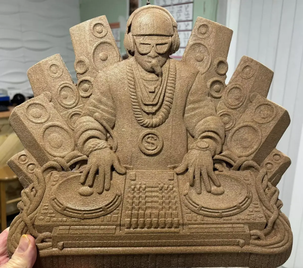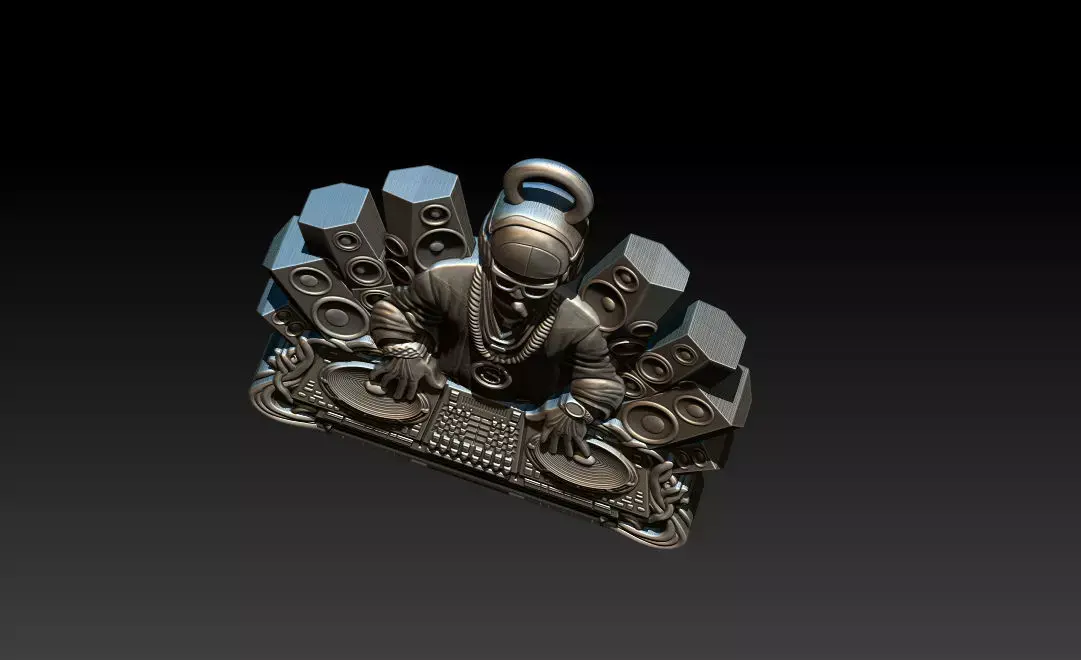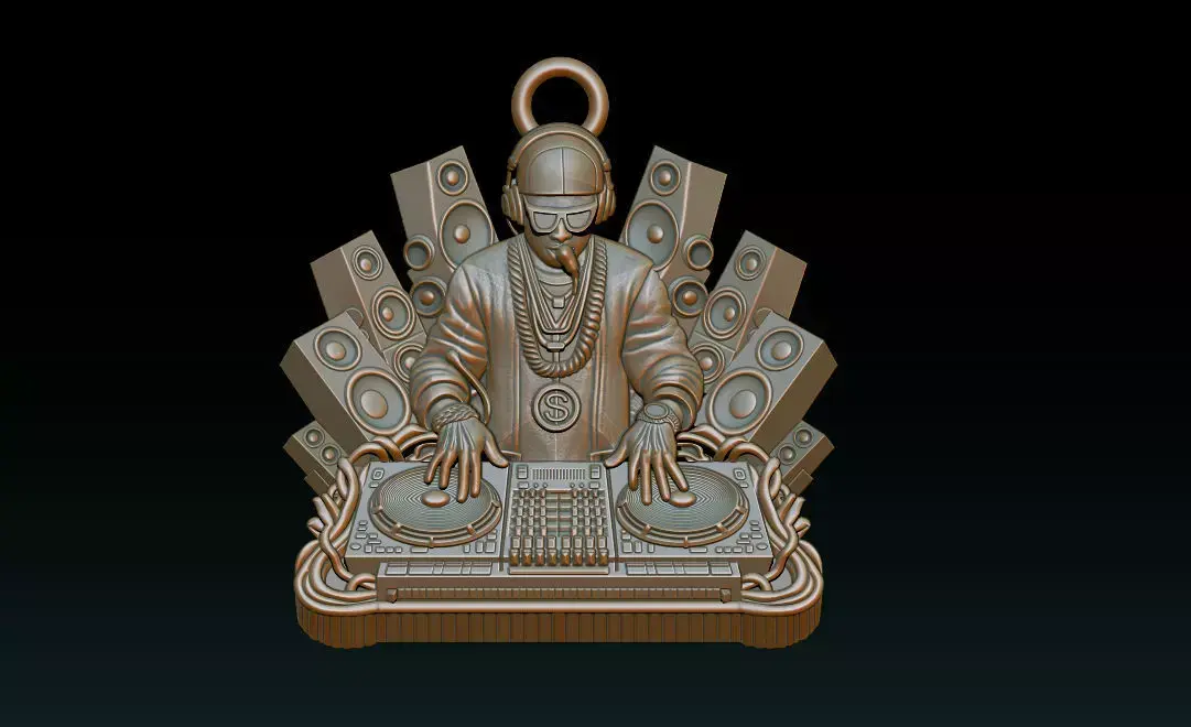 DescriptionHigh-detail 3D relief of a DJ with headphones, turntables, chains, and speaker system. Ideal for CNC machining, casting, resin printing, or digital sculpting.