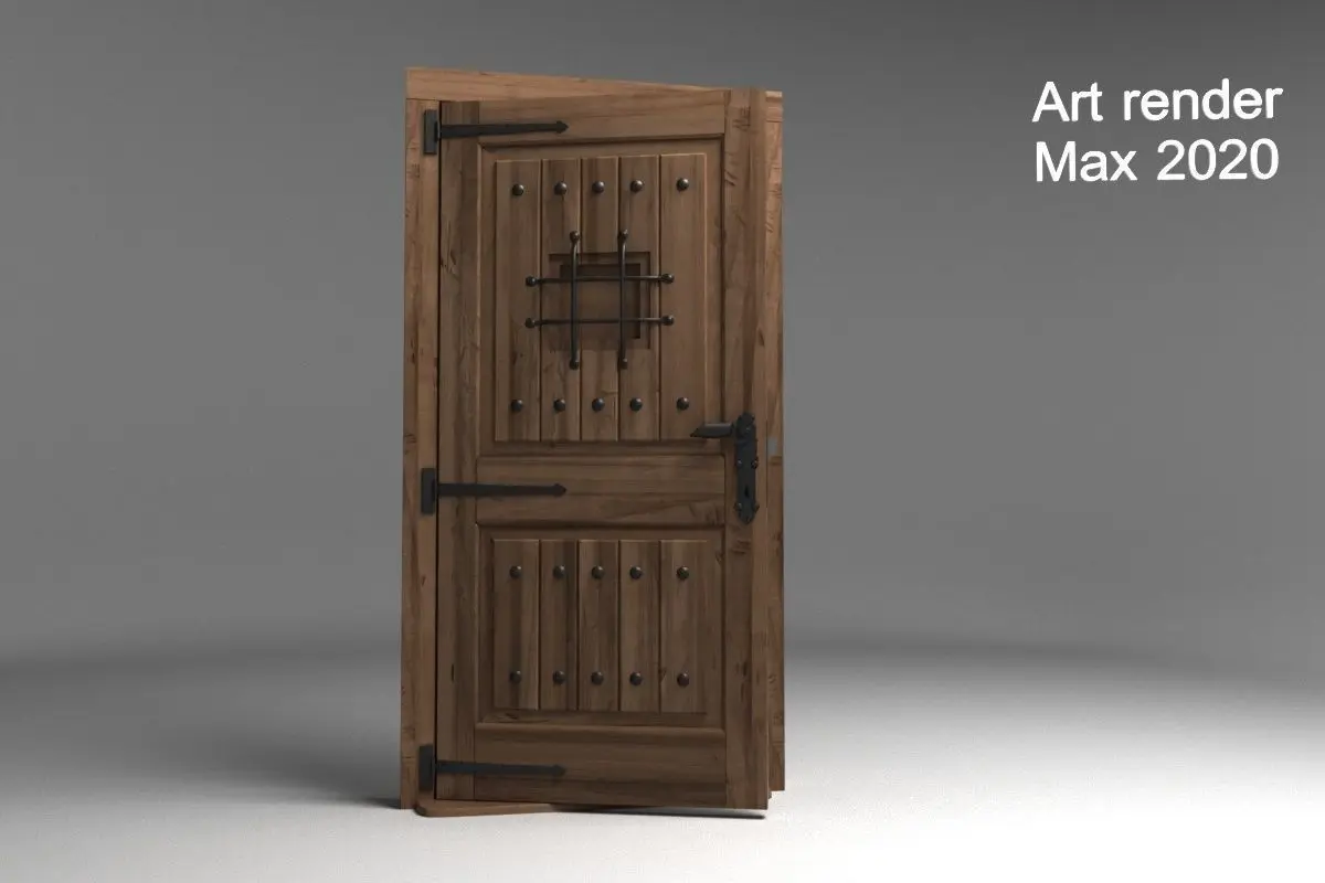 3D model of wood door with bars. The model is adjustable. It is real scale and fully textured. Suitable for visualization in any rendering engine and any software.