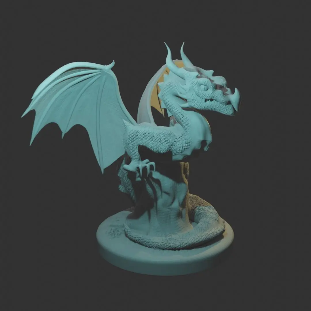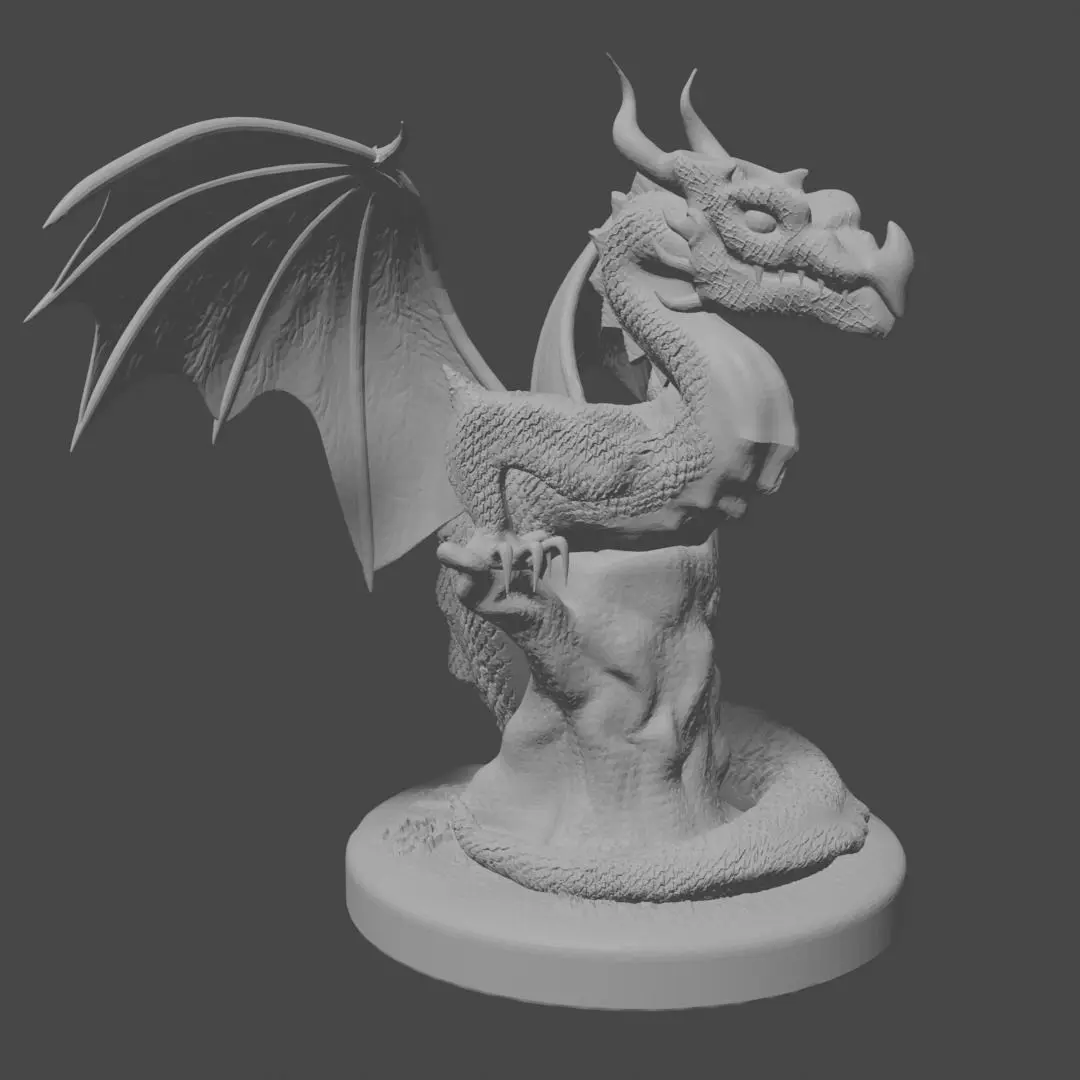This is a 3D model of the Dragon sitting on a stump. 10 cm high