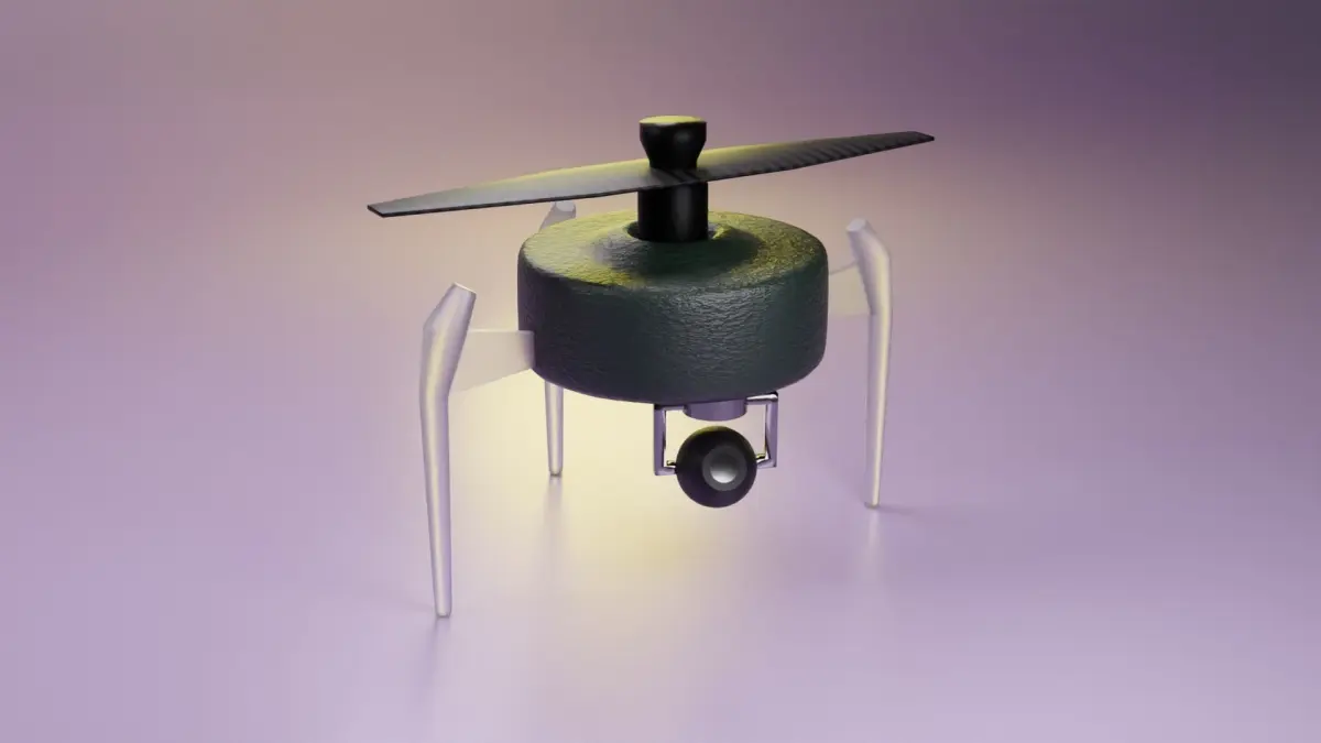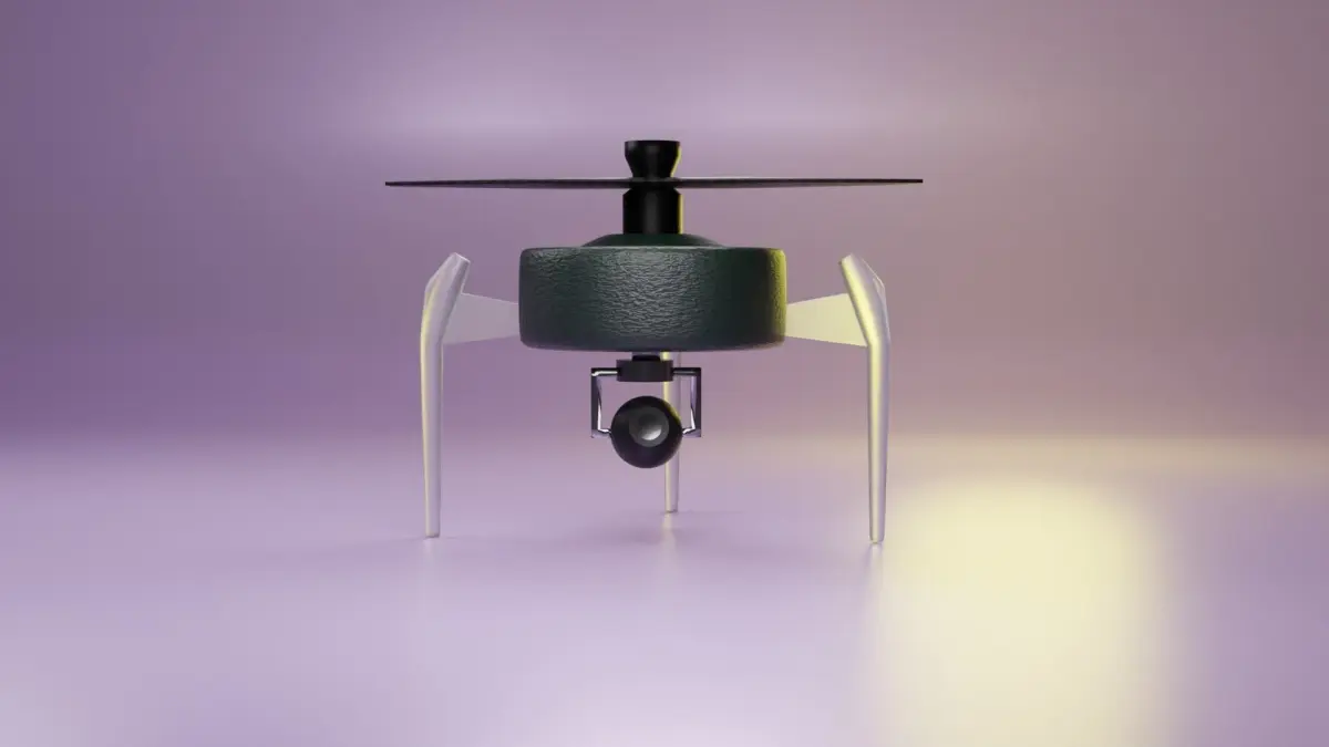 At the front of the drone, there is a small camera module fitted with a gimbal system, enabling smooth and stabilized aerial photography or video recording. The camera can be adjusted remotely to capture different angles and perspectives, enhancing the drone's versatility for various tasks.