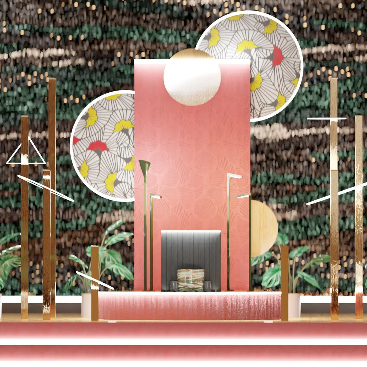 3D elegant oriental vertical expositor podium for product placement. Easy to edit. Separated parts. Blender file included with materials. High quality 4K pbr textures: base, height, metallic, normal, roughness.Created to make digital shootings for 3D product visualizing with a digital camera in a virtual elegant and modern space. Cheaper than real shootings, smart and elegant place easy to edit. Clean 3D topology, powerfull pbr technology. Feel free to change the set to create your own perfect environment.