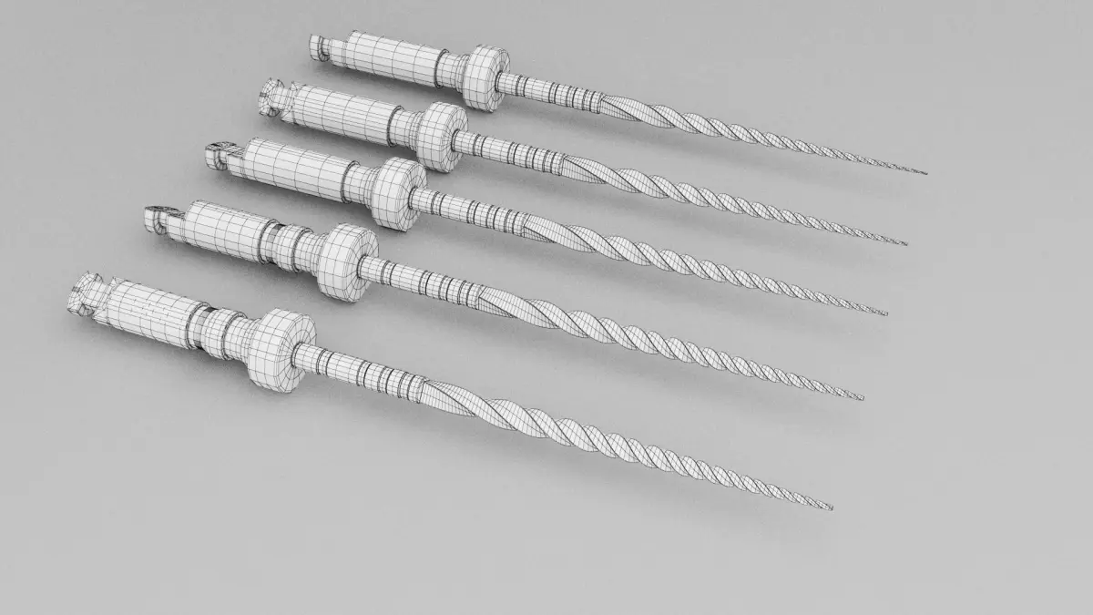 Detailed 3d model of Dental Endodontics Files Set Instrument.A set of 5 Niti( Nickel-Titanium) Protaper Next Rotary Flies (X1, X2, X3, X4, X5 )Originally created with 3ds Max 2014 with Mental-ray Render