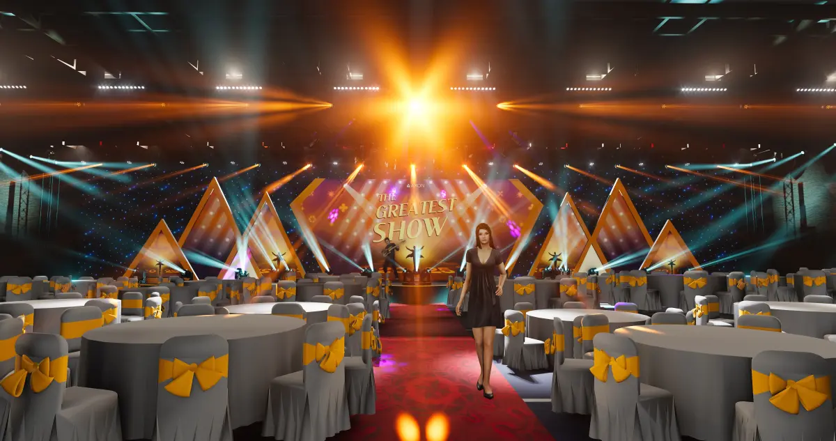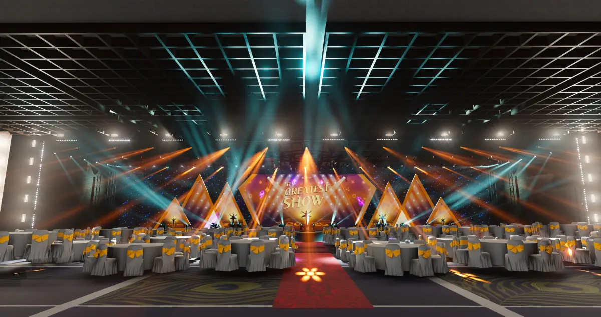 We use the real lighting system of the M.A consoleModern stage for event - year end partyStageScene is ready to render as seen on the previews.Light setup and all materials are included.Stage:20m width x 3.5m depth x0.6m highLed screen: cover led alot slideAmount light: 20 katana lights, 80 beam F400 , 20 atomic led , 20 blinder , 20 par led ...Format:depence, dae, mvr, skp,Software:sketchup 2021, Dependence3, M.A Console 3.2.2Renderer:Dependence3Additional Services: