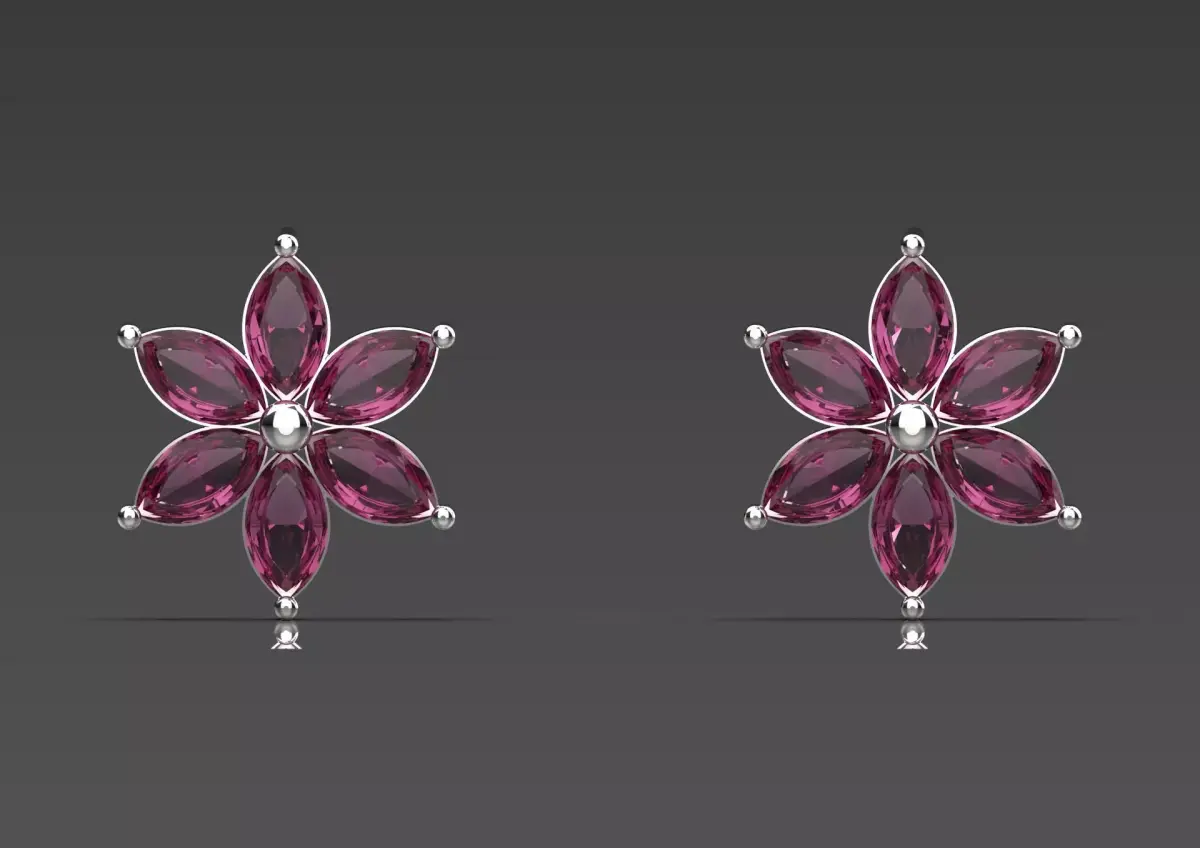 This Accurate and Fully Manufacturing Ready 3D File Includes a Stud Earring Model with a Six-Finger Flower Design, Made Up of Six Beautiful Marquise Cut Gemstones. This Delicate and At the Same Time Outstanding Design Adds a Luxurious and Feminine Look to Any Style.