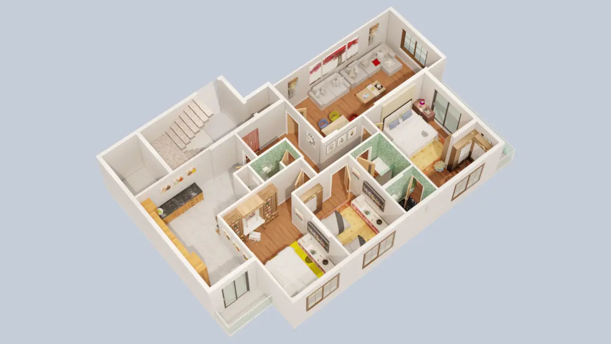 this is a 3d floor plan from SketchUp with lumion. this is a complete and detailed floorplan of a modern apartment with all furniture and textures visible in provided images. objects were selected carefully to match the design of each other with careful attention to colors and texture harmony. Regardless of your style, interior design should have a personality. Take a look at the brilliantly designed spaces here and the qualities that make them so excellent. Maybe they'll inspire a great design of your own.