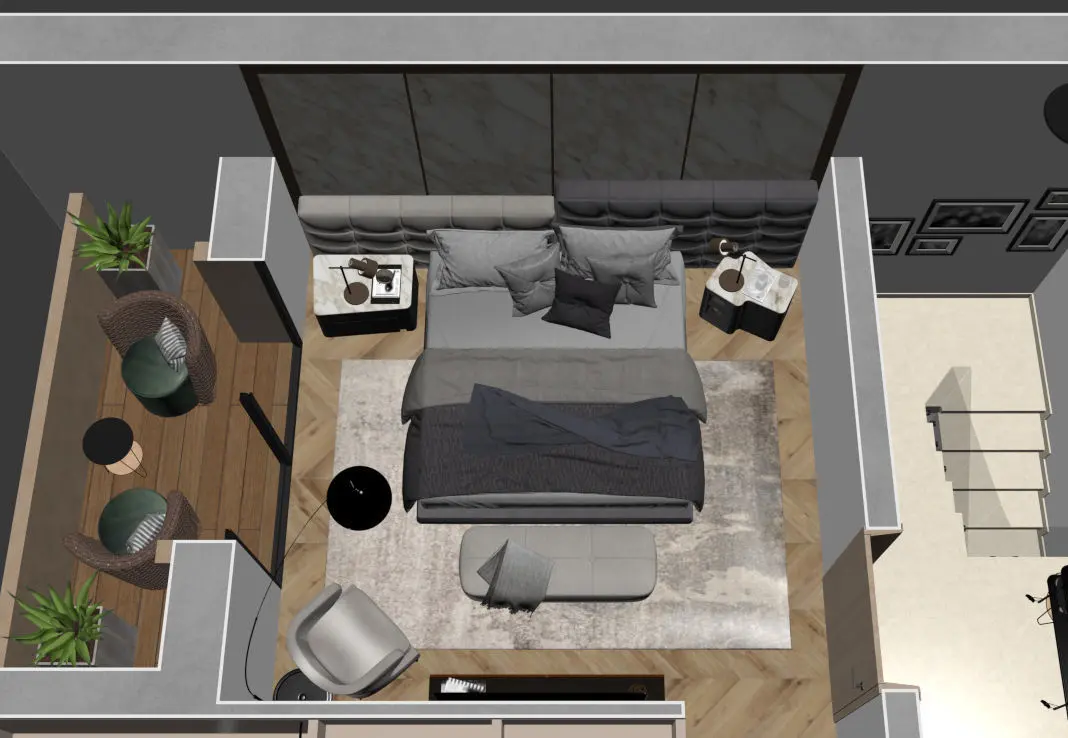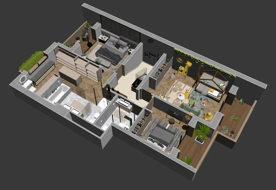 A complete and detailled floorplan of a modern appartment with all fourniture and textures visible in provided images. objects was selected carefully to match design of each other with carful attention to colors and textures harmony. Regardless of your style, interior design should have a personality. Take a look at the brilliantly designed spaces here and the qualities that make them so excellent. Maybe they'll inspire a great design of your own.