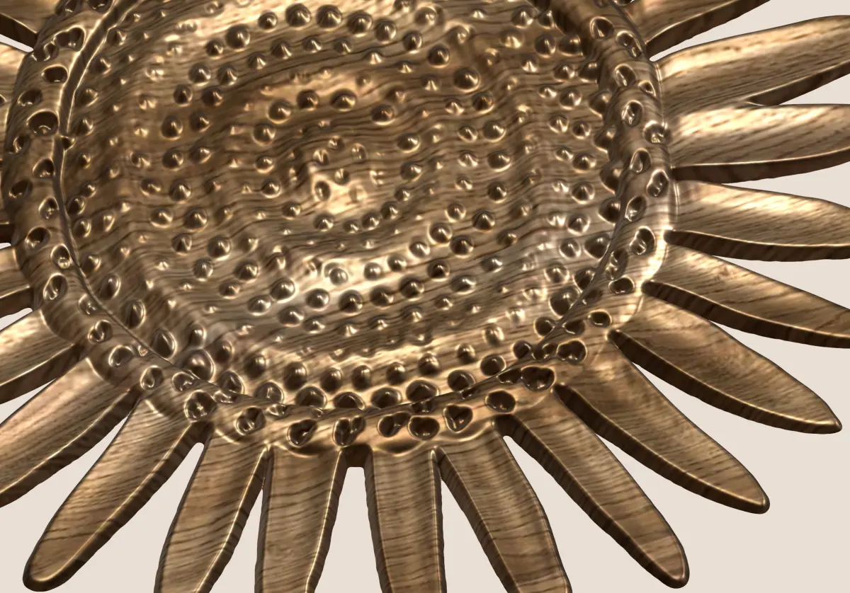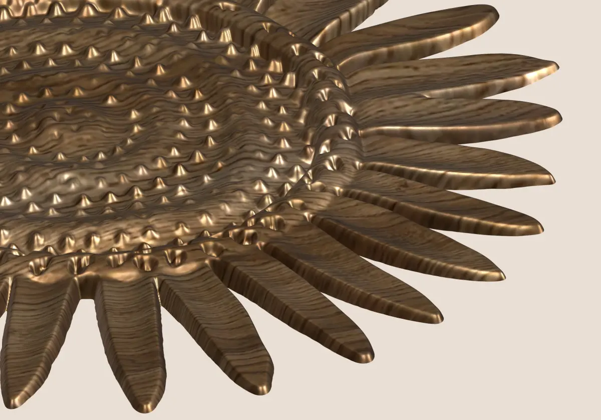 The model features intricate petal structure and a realistic textured core for precise reproduction. It can be scaled to create panels of various sizes. Suitable for creating wood, plastic, gypsum, or metal products.