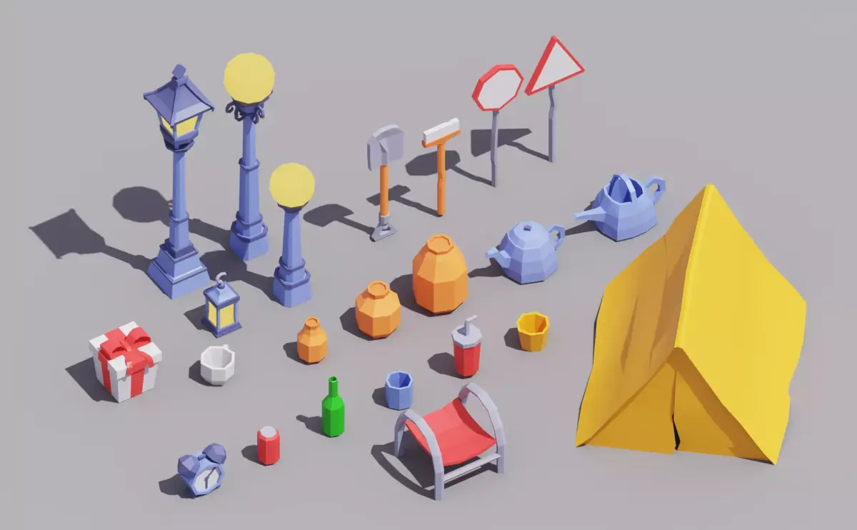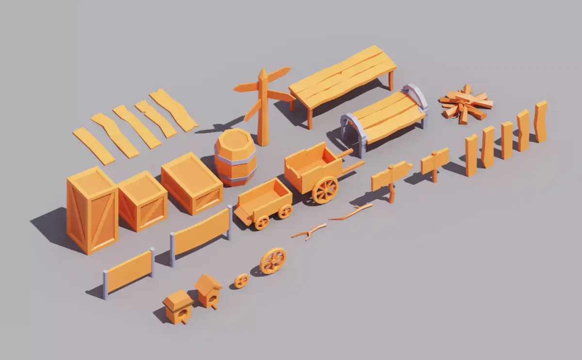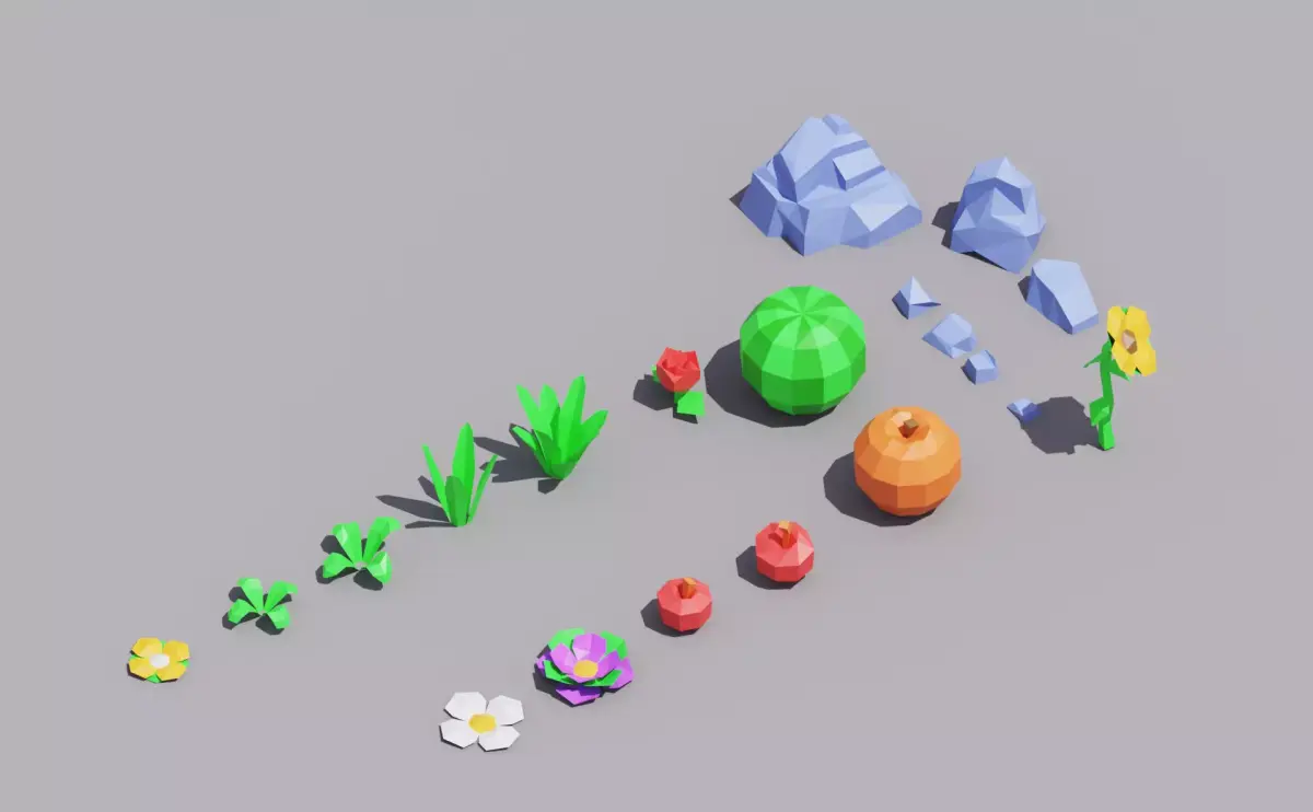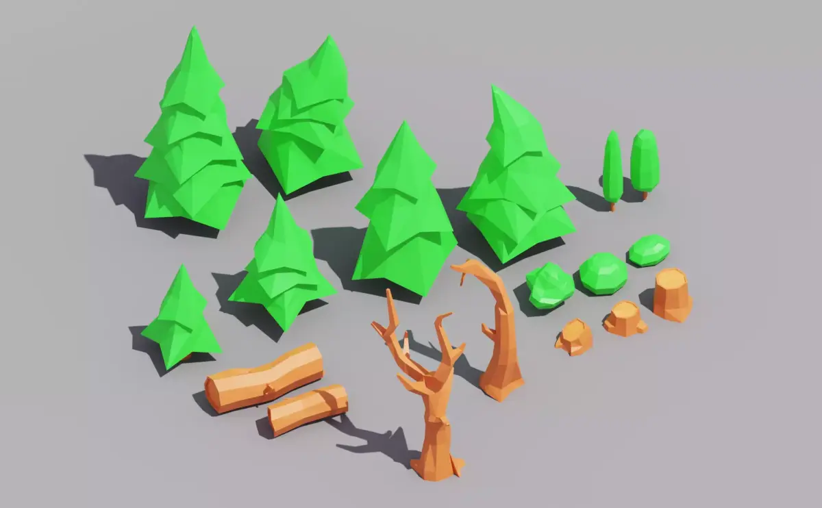 This is a pack, which contains props related to forest theme.There are trees, fruits, sticks, logs, lamps etc.There are multiple materials of colors like red, yellow, brown etc.