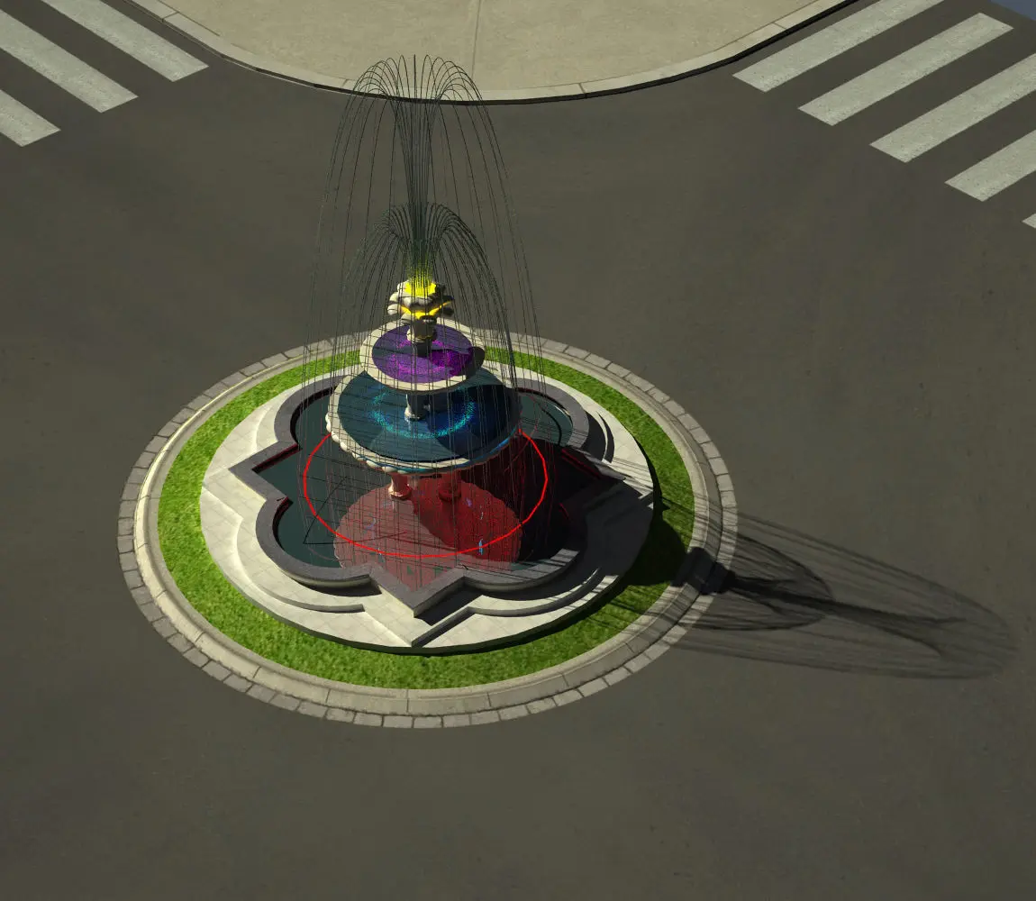 3D fountain designed at cross road like square in the city