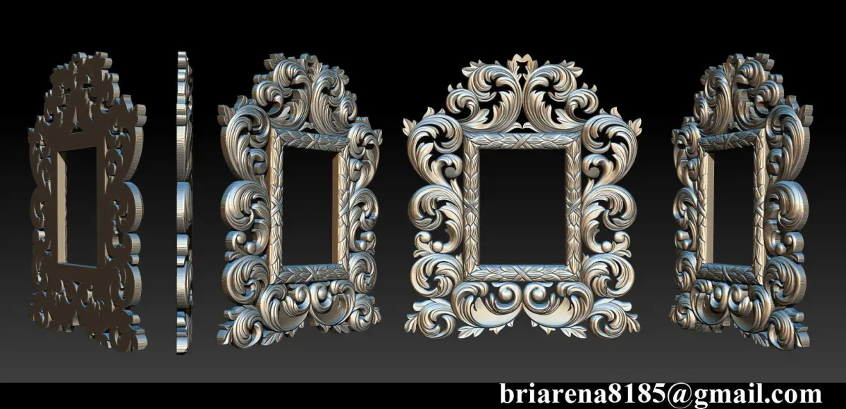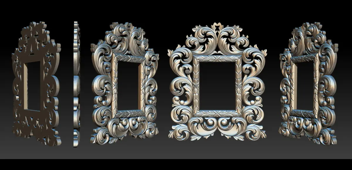 Mirror classical carved frame, ideal for a classic and luxurious interiors in the art style. This model created in Zbrush and have polygonal geometry. This 3d model is prepared to physical production by CNC machining. Also it can be used for interiour design and vizualizations.
