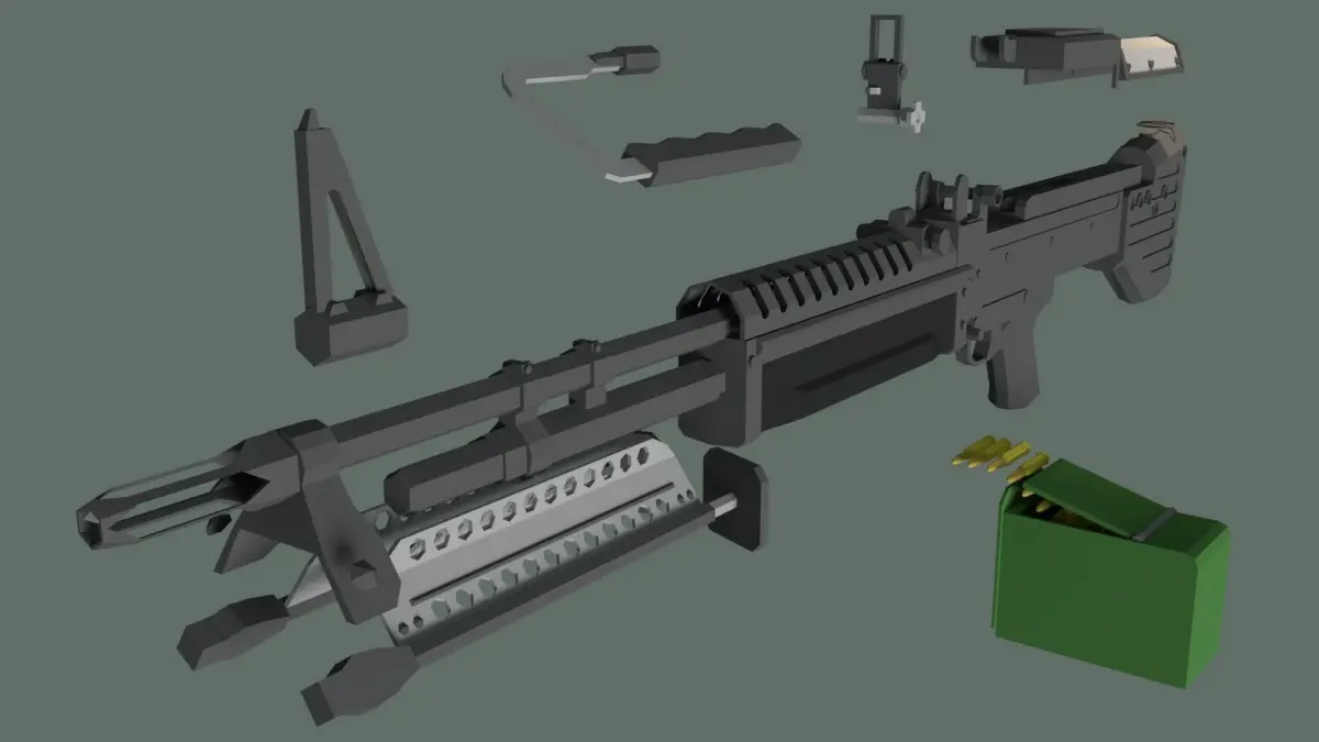 A Low poly M60 machine gun with a lot of details.Triangle count: 10,552Verts: 5,417Rigged, Dust cover, Magazine, Charging Handle, front and rear sight, and Trigger.