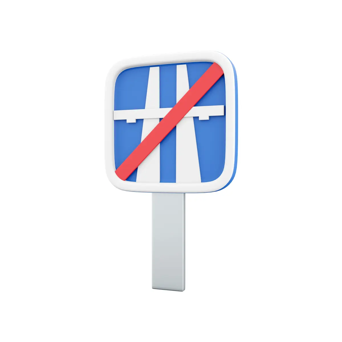 3d render the end of a motorway traffic sign. 3d of the end of the highway road sign. 3d rendering freeway finish symbol, cartoon icon