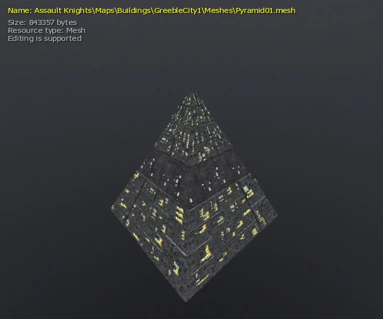 This is a 3D greeble Pyramid. With lighted textures. All textures are between 256 to 2048.