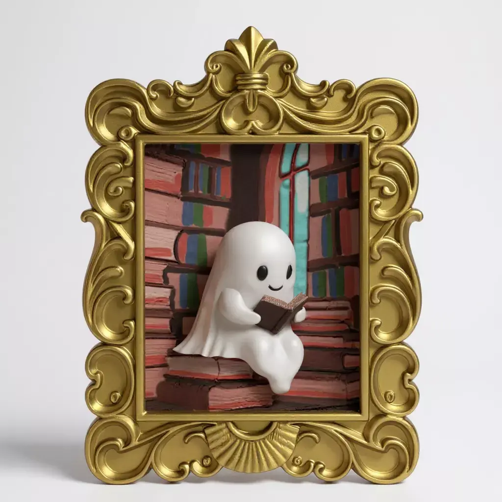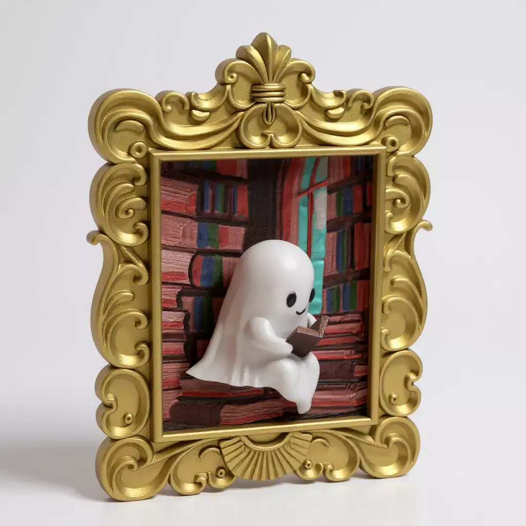Brighten any space with a touch of charm and mystery with this enchanting 3D frame, featuring an adorable little ghost engrossed in reading a book! This model combines the cuteness of the supernatural with the pleasure of imagination, perfect for decorating your space or gifting to book and Halloween lovers.