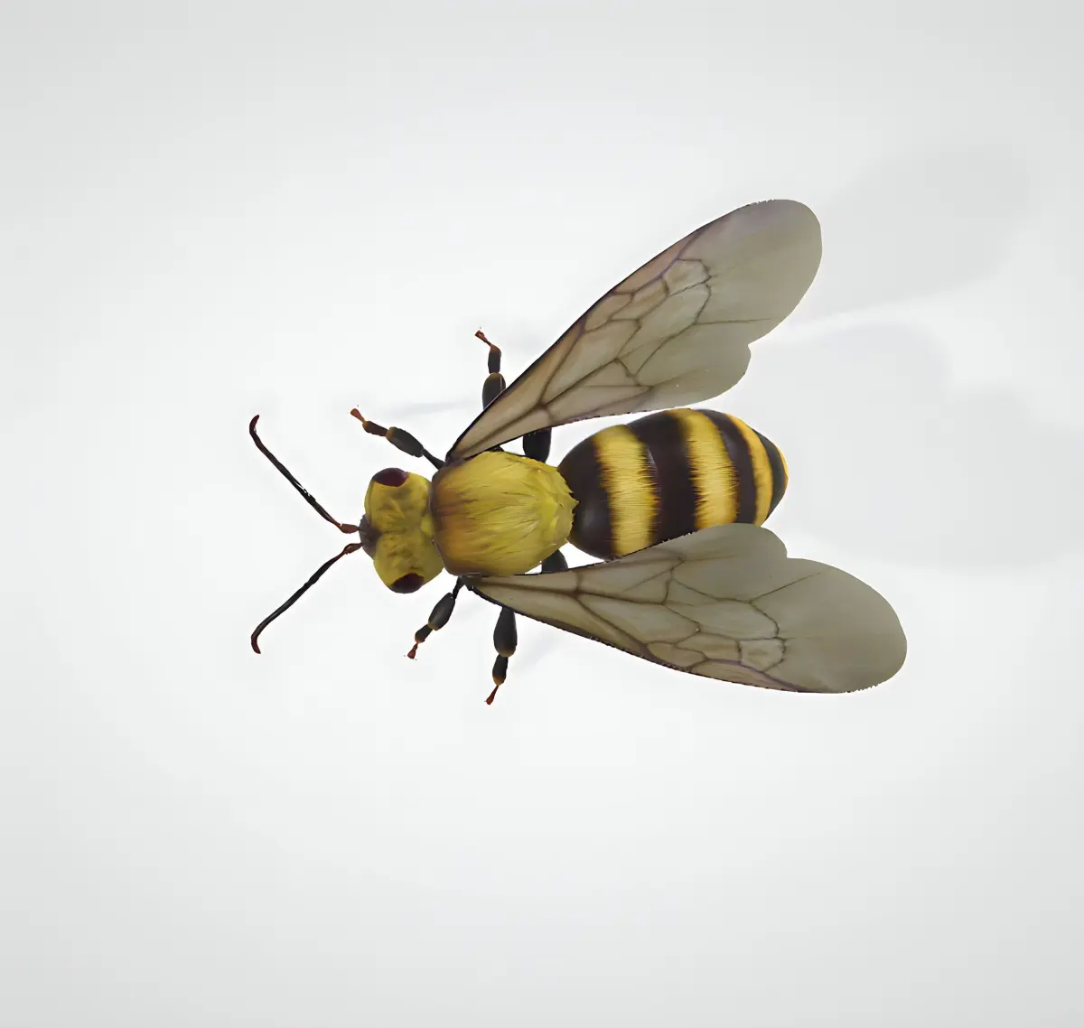 From the delicate translucency of its wings to the microscopic fuzz on its body, every facet of this 3D bee is designed to evoke a sense of awe and wonder. The hyperrealistic approach extends to the subtle reflections on its eyes and the precision of its intricate legs, showcasing the dedication to authenticity in the modeling process.
