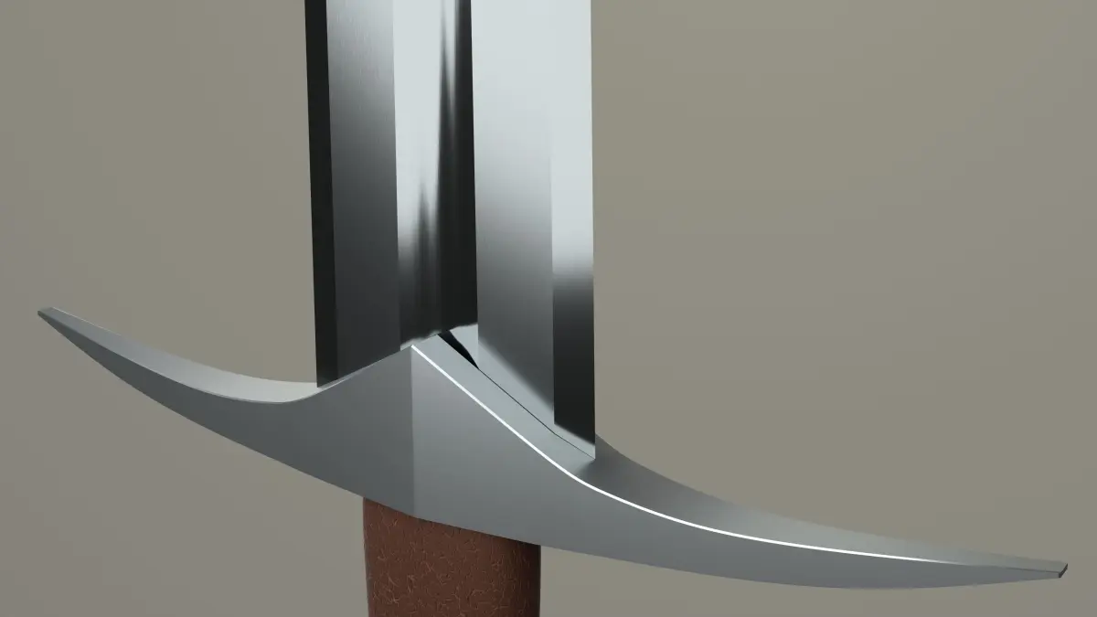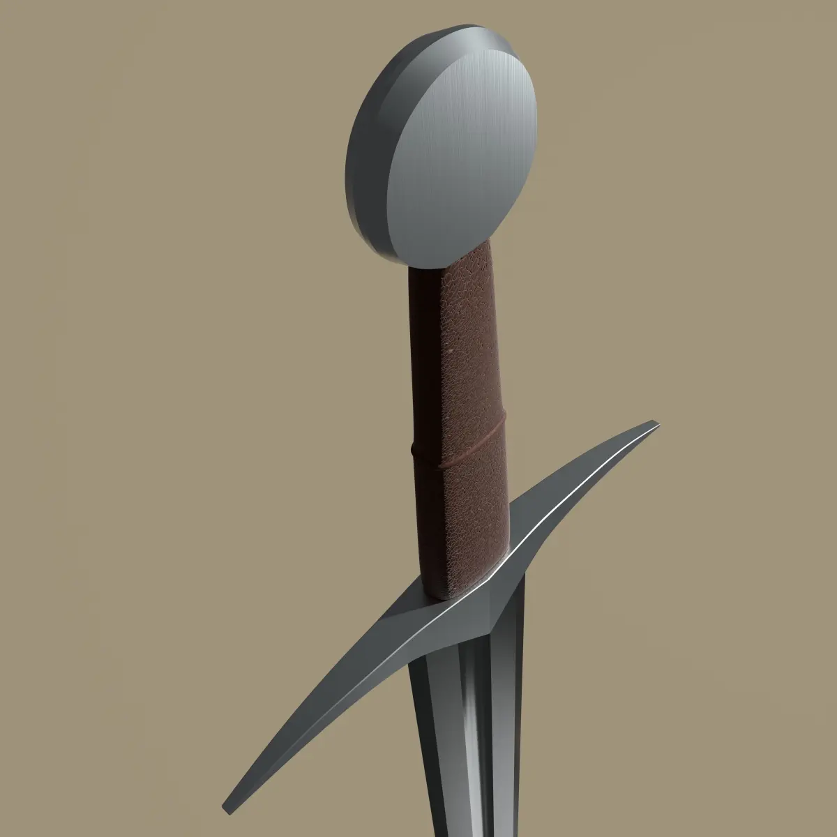 Procedural materials for 3 different steels(blade, edge/details and guard/pommel) and the leather handle. UV mapped with no textures