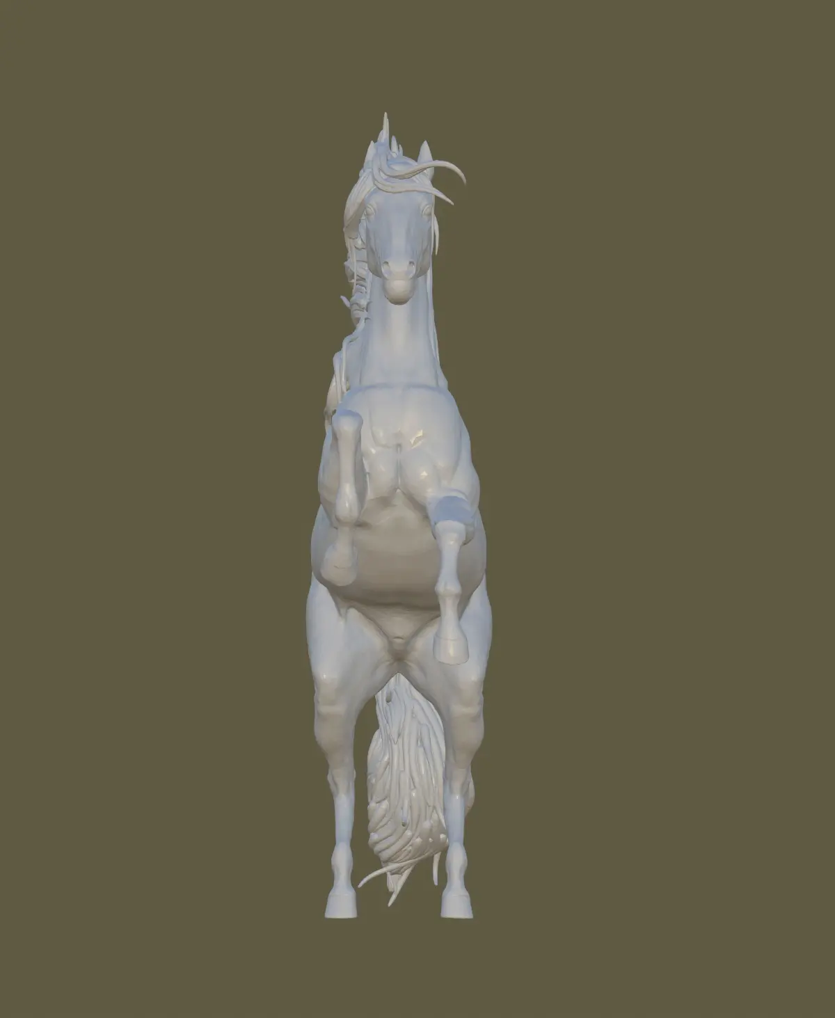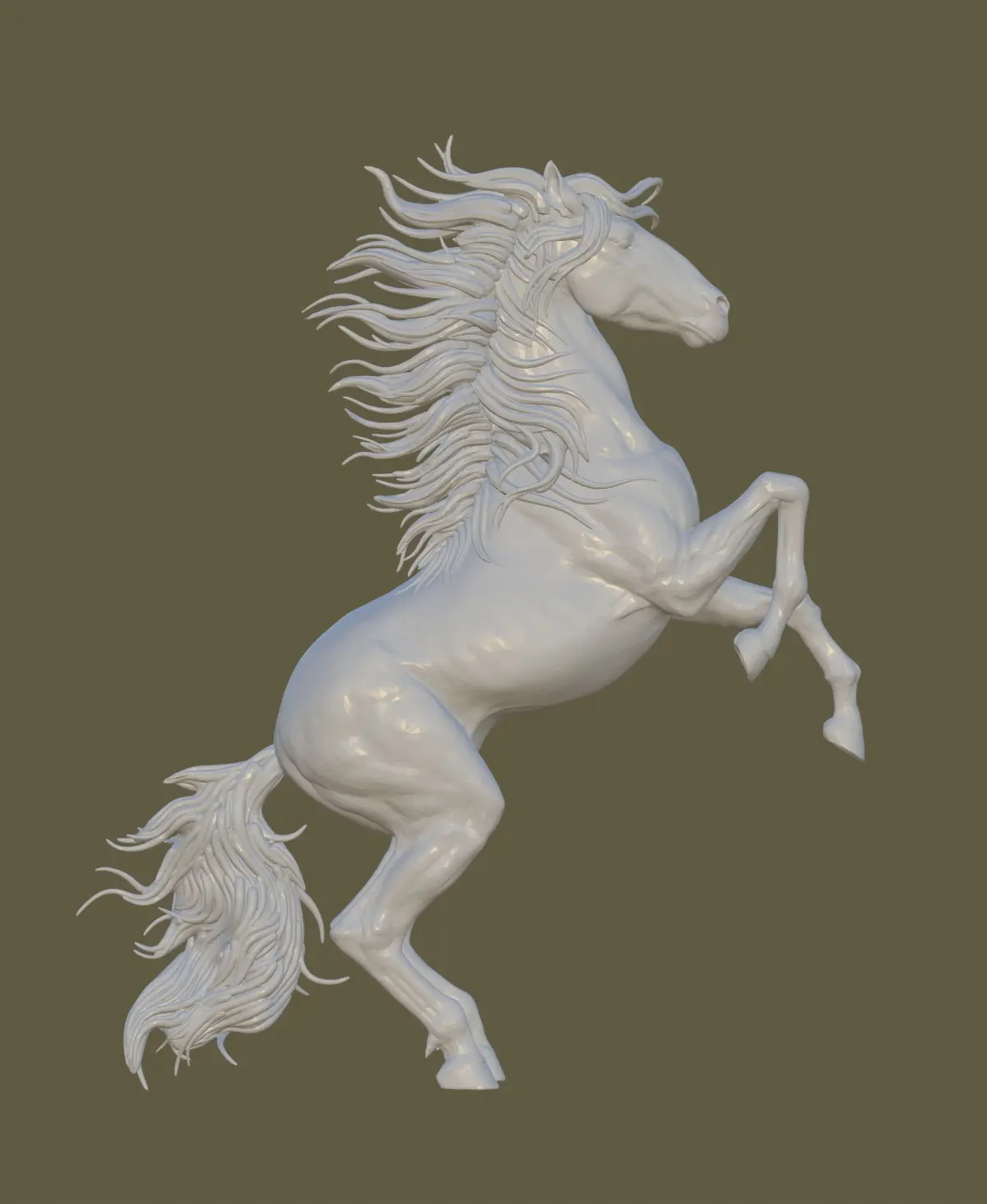 - A 3D model of a horse standing on its hind legs, ready for printing with high resolutiondimensions: 159.8x133.9x36.9 mm