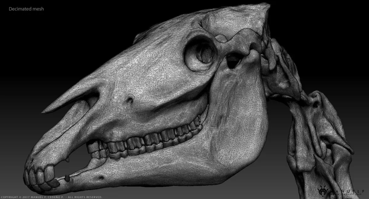 The original highpoly model can also be used for 3d printing, since all the bones are watertight or manifold, that is, they have no holes. However, some additional editing may be needed.