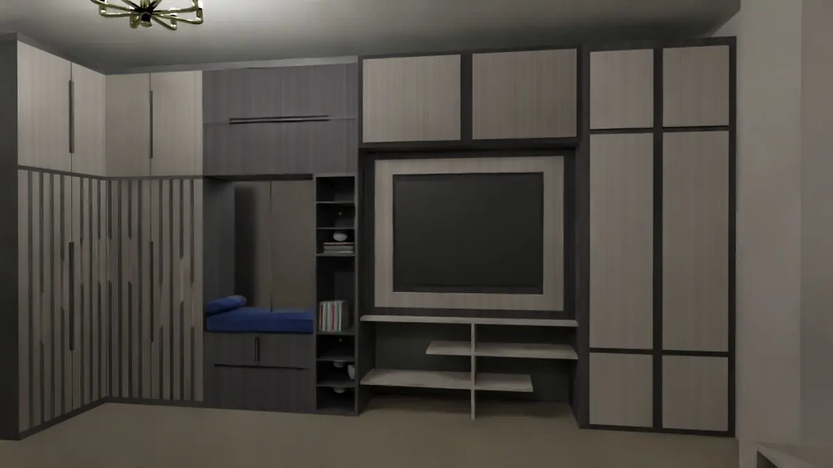 3d house model Apartment consisting of three bedrooms, a master, three bathrooms, a reception area, a spacious living area, a kitchen with the integrated division, furniture, doors or windows