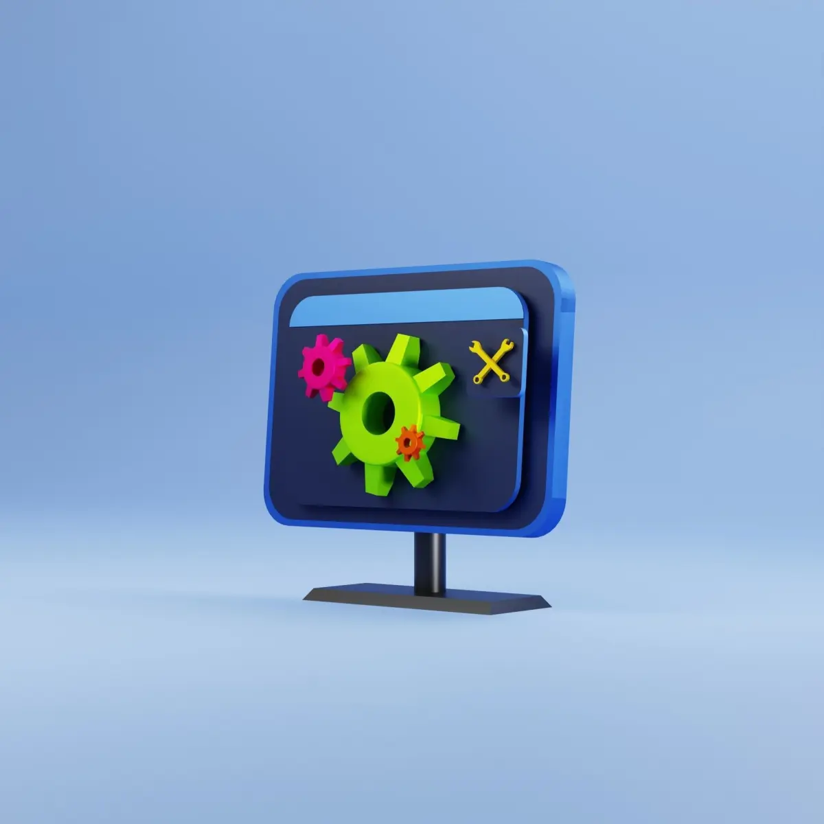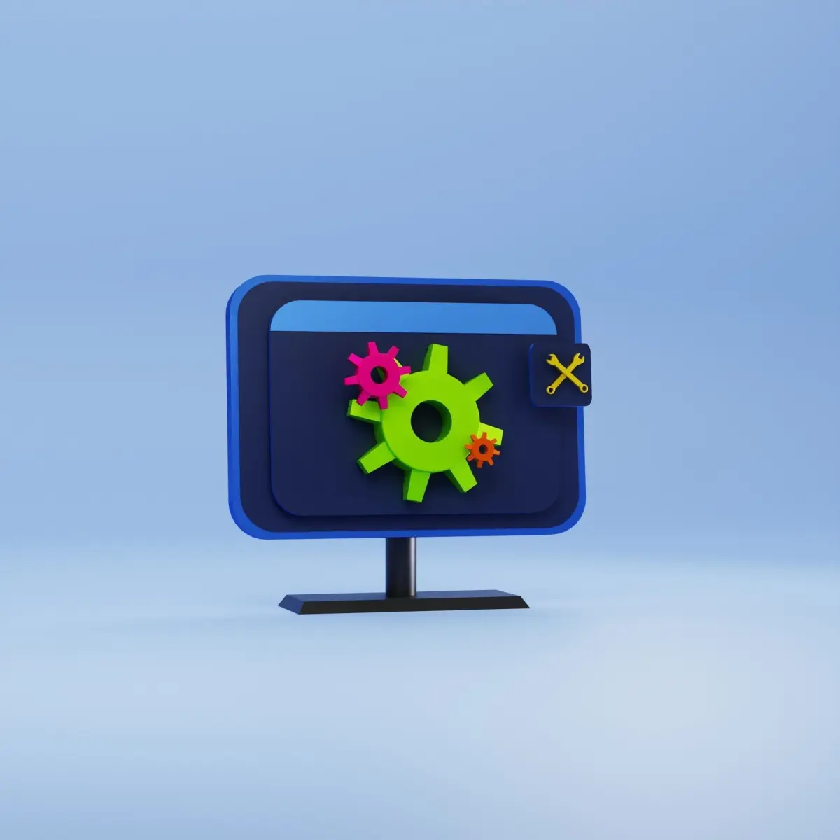 HomeCatalog3D Illustration computer with setting icon and wrench 3D model