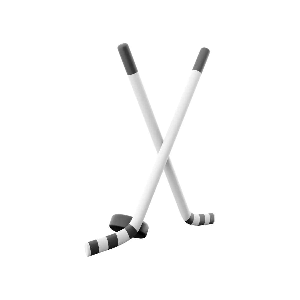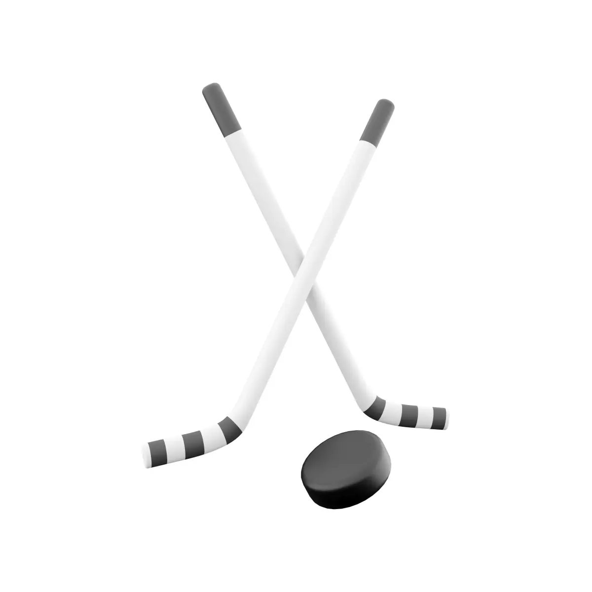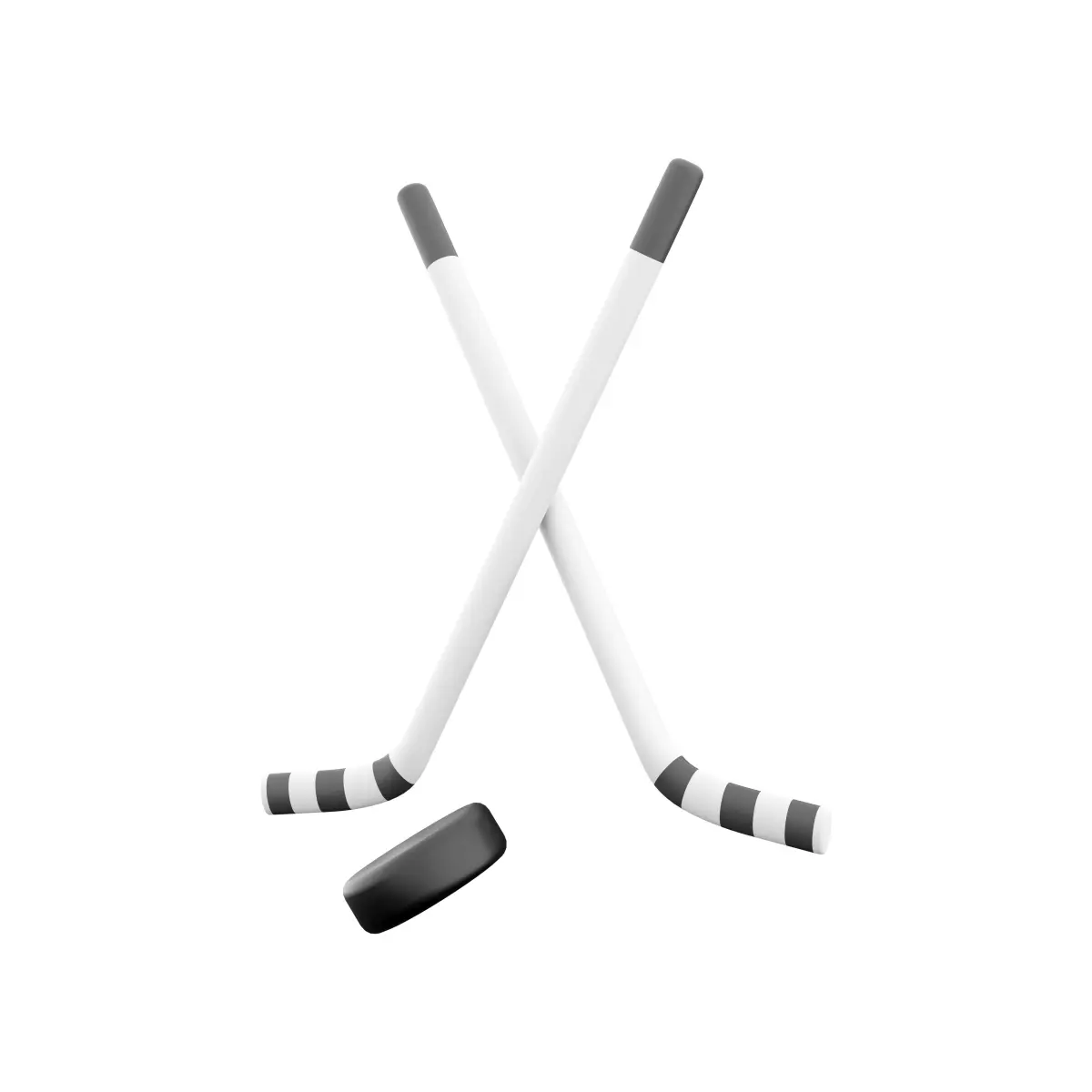 3D rendering illustration of crossed hockey sticks and puck. Winter sports team championship concept. 3D cross hockey sticks and puck icon.