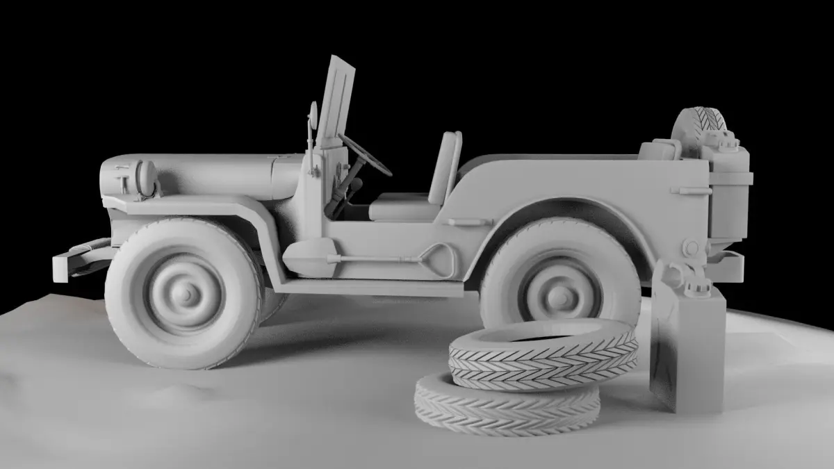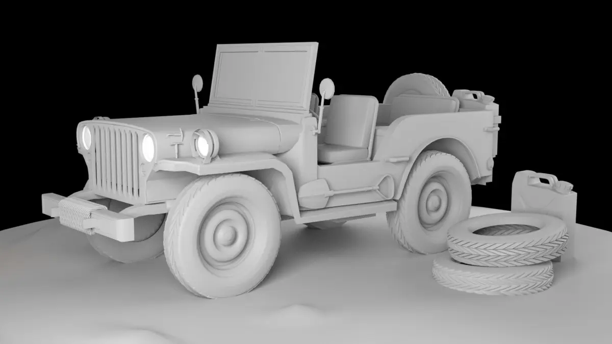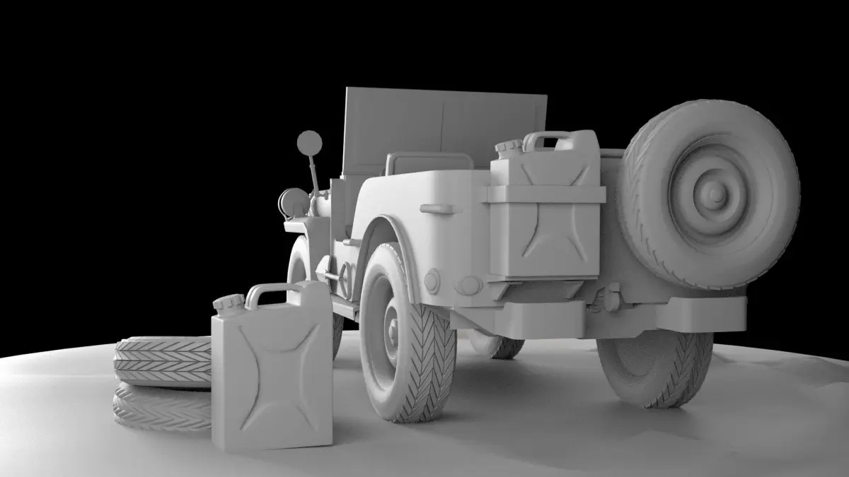 3d jeep model made in autodesk maya. Model is low poly and uv are unwrapped. Textured as a old version.There is aso Gas can made and some tyres are kept there.