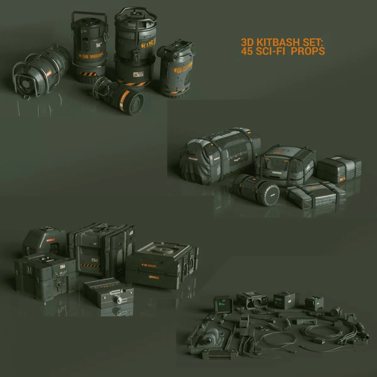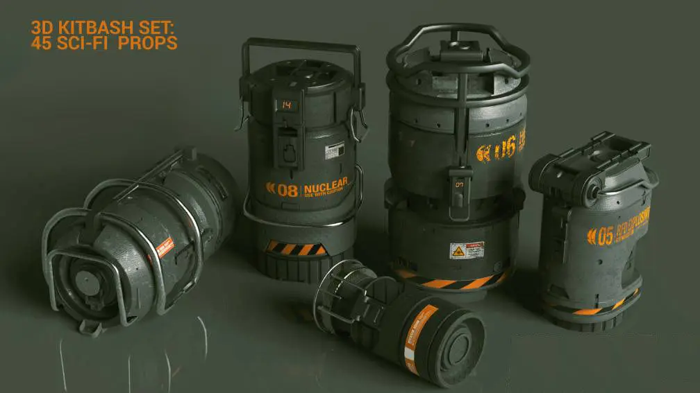 3D KITBASH set 45 sci-fi props Low-poly 3D model