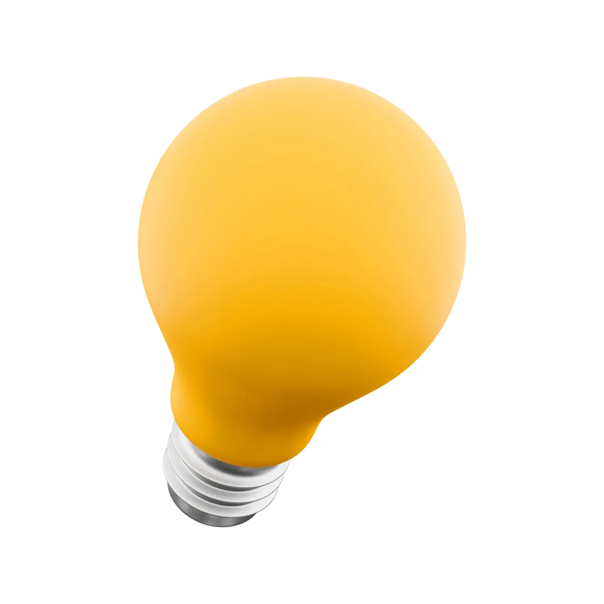 The 3d render of the icon is a yellow light bulb. 3D lamp icon rendering on white background