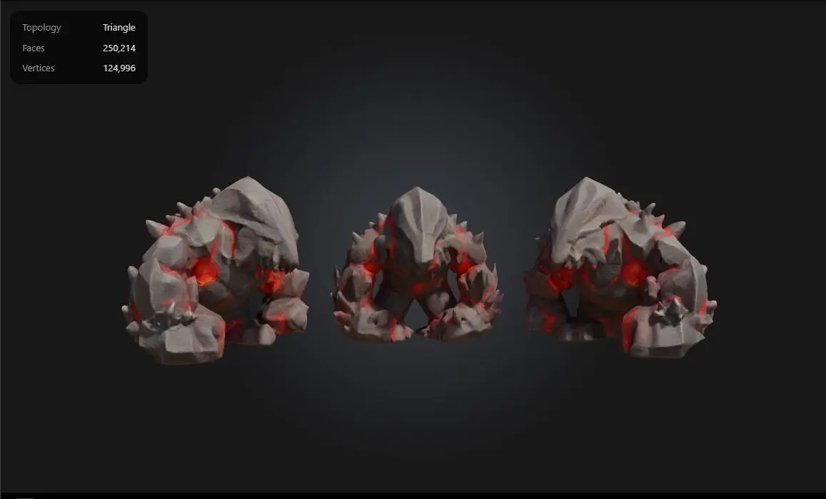High-Detail Lava Monster 3D Model – Perfect for Fantasy Games & AnimationsThis 3D model of a Lava Monster features realistic textures, glowing lava cracks, and detailed rock formations. Perfect for use in fantasy games, animations, or visual effects, this model offers an incredible level of detail with 250,214 faces and 124,996 vertices. The lava glow effect adds a dynamic touch to this powerful creature. Ready for use in high-end rendering and animation projects.