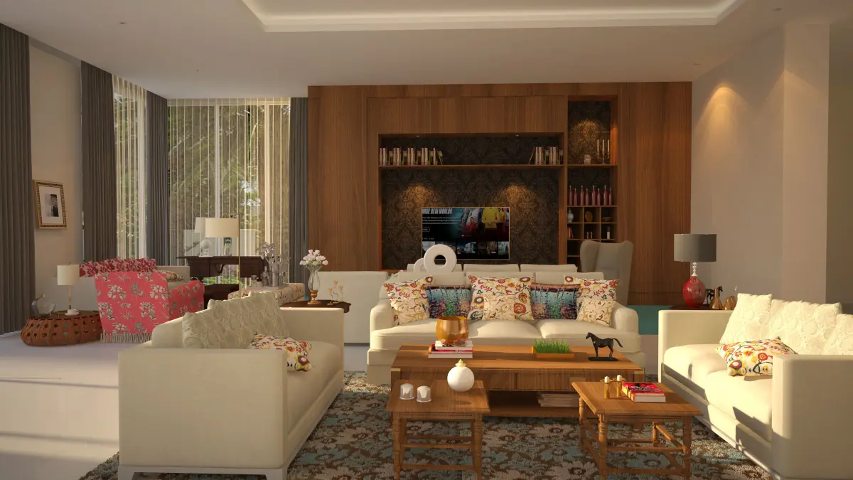 Elegant 3D Living Room Salon Render – Designed with 3ds Max 2020 & V-Ray