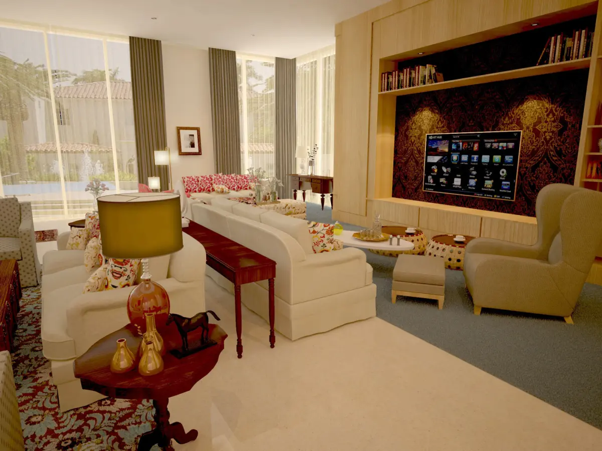 This render reflects high attention to detail and aesthetic balance, making it perfect for interior designers, architects, or 3D artists looking to showcase or incorporate premium living room concepts.
